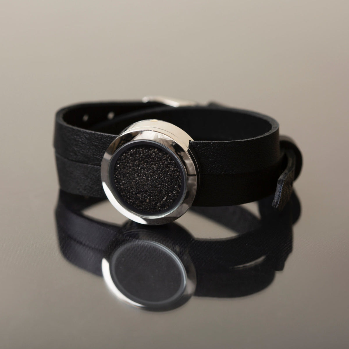 Handmade Designer Leather Bracelet With Natural Volcanic Lava Sand – Unique Jewelry