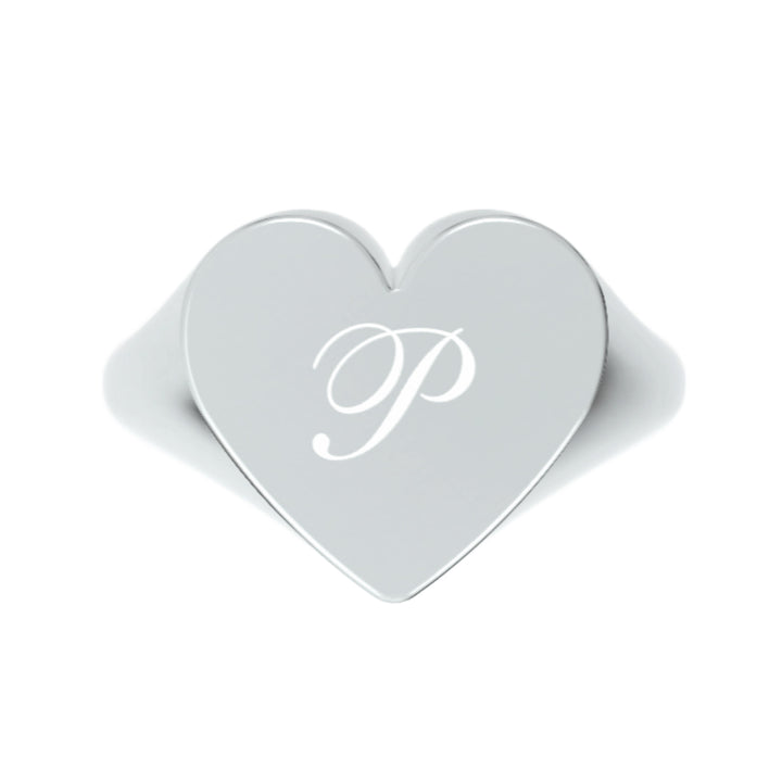 Custom Heart Shaped Chevalier Ring In Sterling Silver With -P- Initial