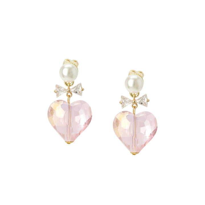 Whisper Of Heart Crystal Bow & Faceted Heart Drop Earrings