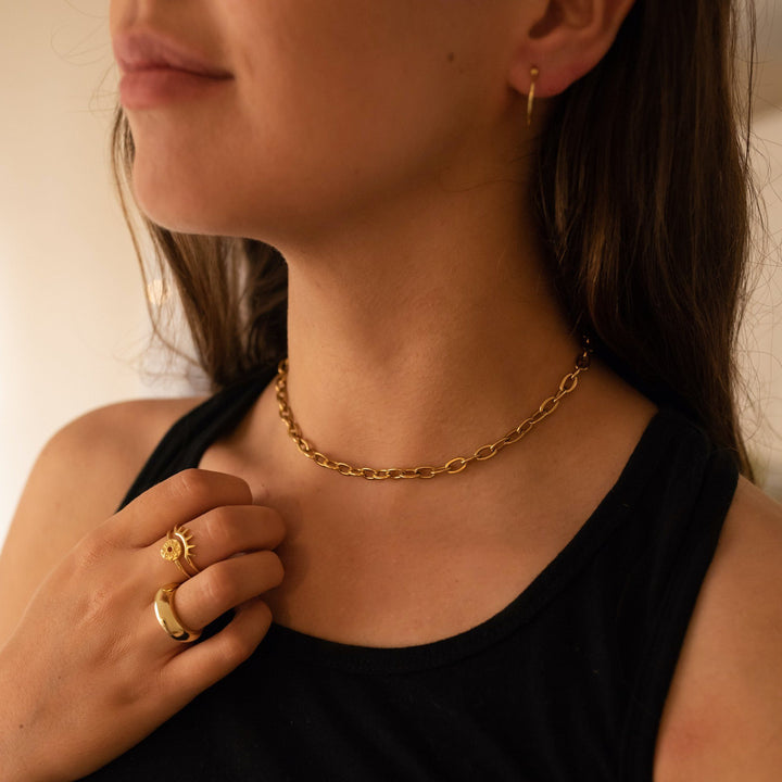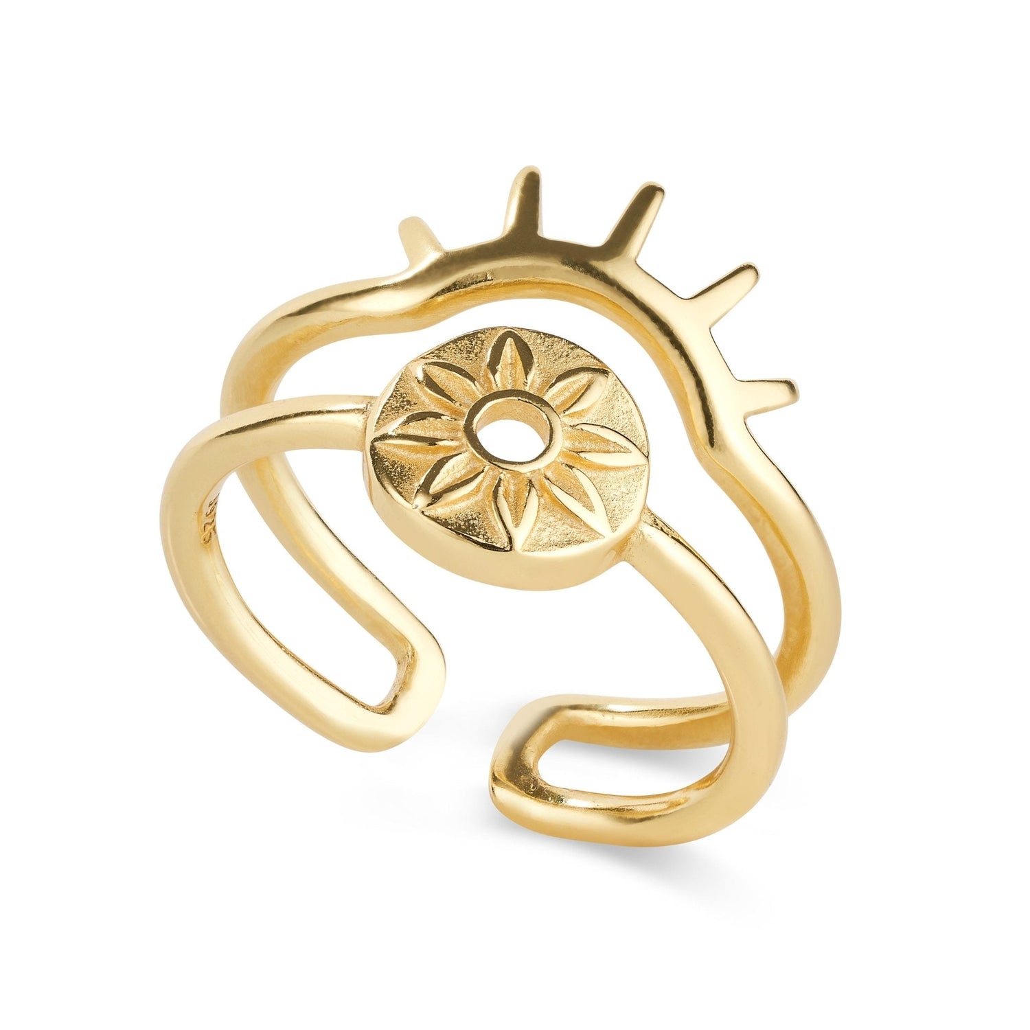 The Dainty Gold Sun Ring by Elk & Bloom brings a radiant touch with its star-inspired double band design. Adjustable to fit all finger sizes, it’s perfect for gifting or everyday styling. Crafted with durability and polish, it’s a versatile modern classic.