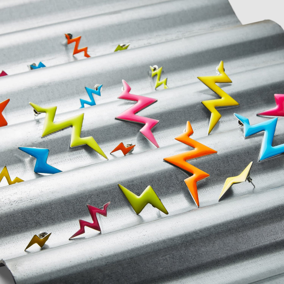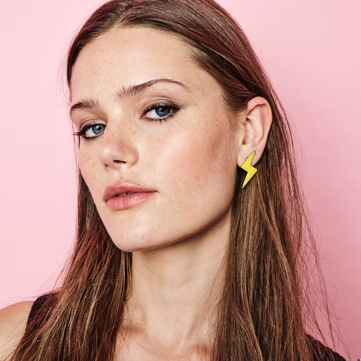 These Bolts - Lime Green Enamel by Toolally bring an electrifying touch to your look, embodying bold energy and contemporary playfulness. The vivid lime green enamel contrasts strikingly against the dark stainless steel, creating a powerful graphic edge. Symbolic of sparks and flashes, these studs celebrate individuality and expression, making them perfect for statement styling. Whether worn solo or layered with other Beats and Bolts pieces, they are versatile, lightweight, and designed to amplify any outfit with daring confidence.