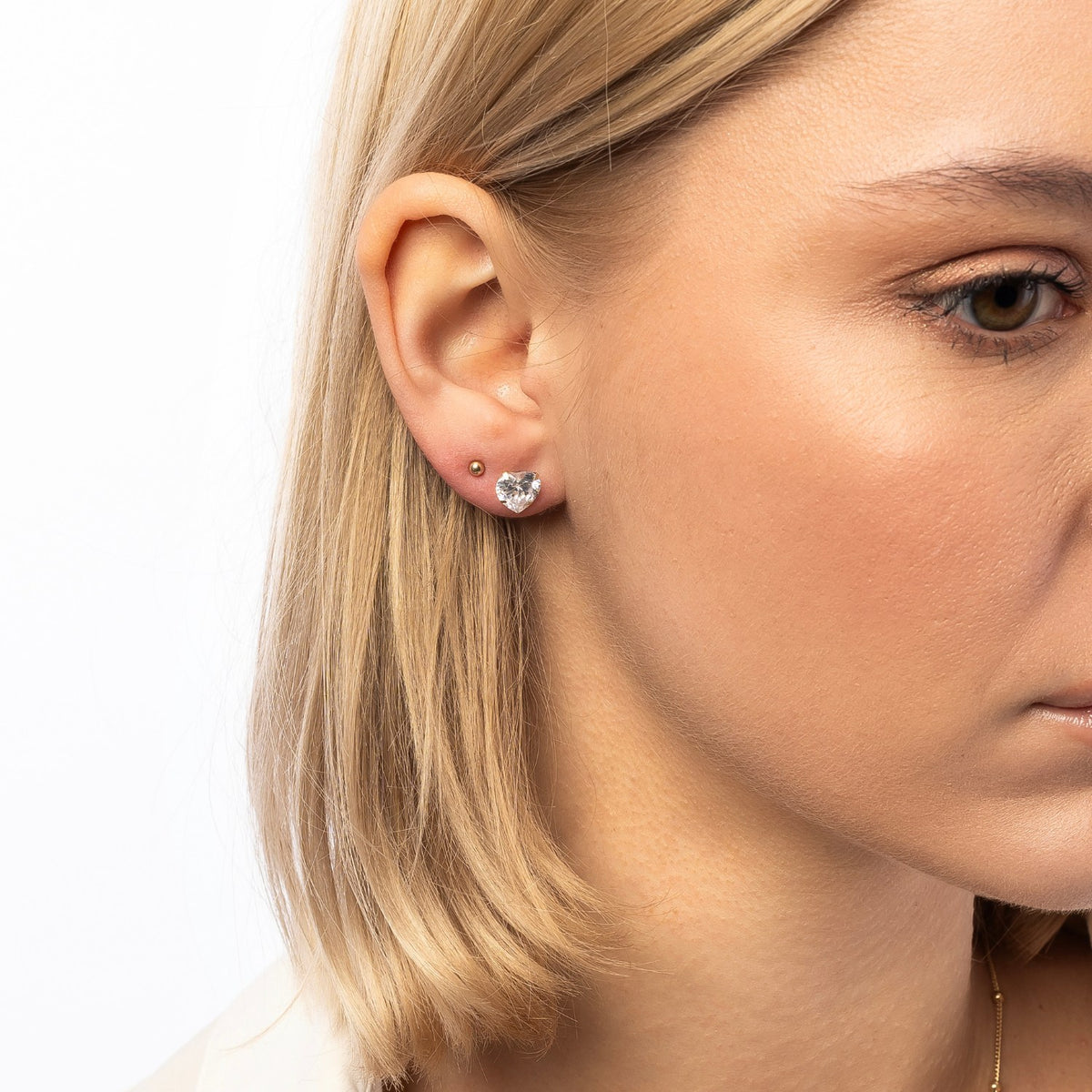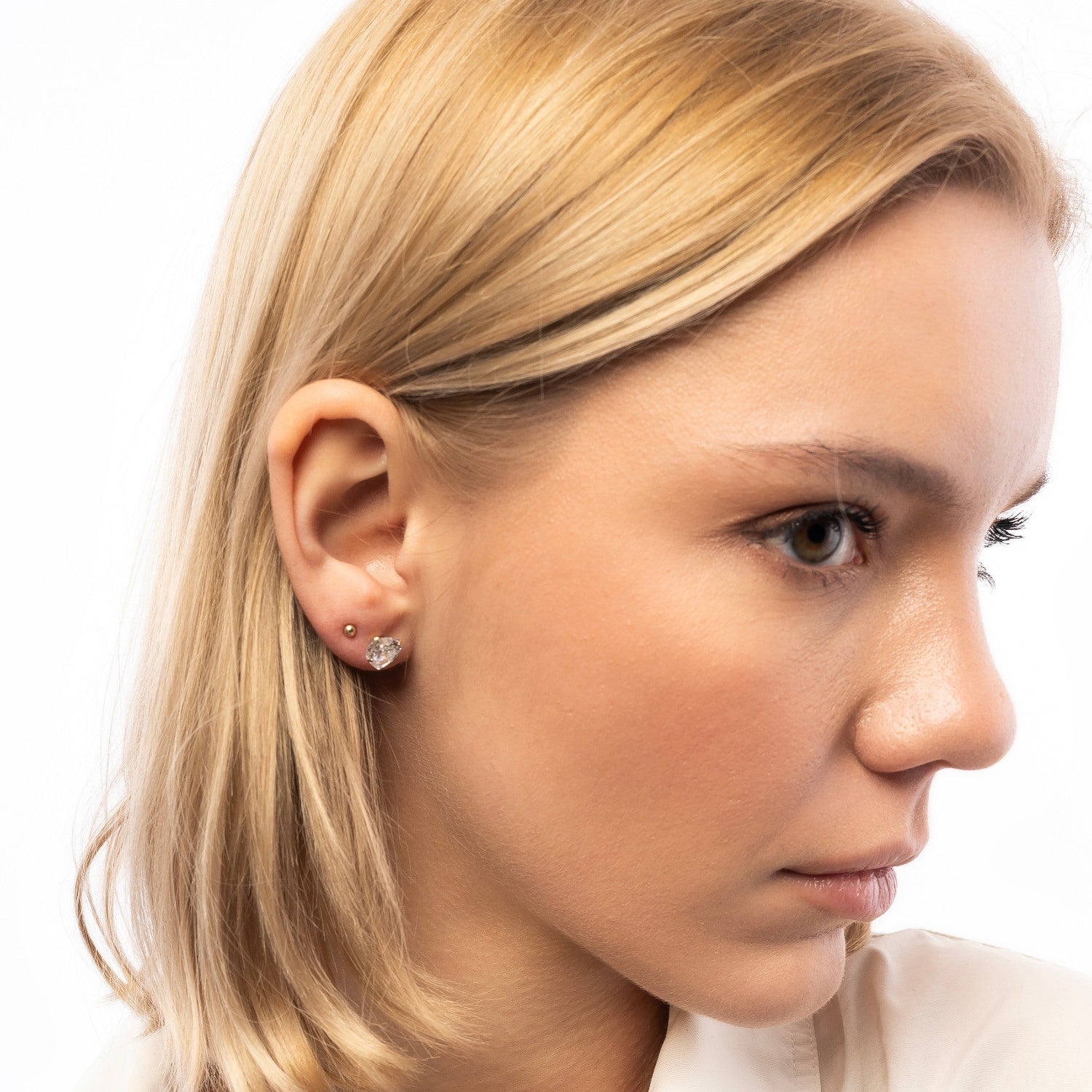 These stud earrings are made from 9ct solid gold. They have a diameter of 3mm and a weight of 0.22g.