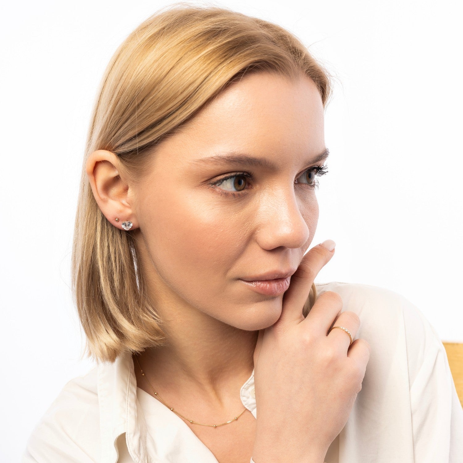 These 9Ct Solid Gold Sphere Stud Earrings by Spero London are a timeless expression of luxury and modern simplicity. The clean, spherical design is both unique and classic, adding a touch of sophistication to any outfit. Made from solid gold, these earrings are exceptionally durable and versatile, designed to be worn effortlessly day and night, no matter the occasion. They are a true investment in enduring style and quality.