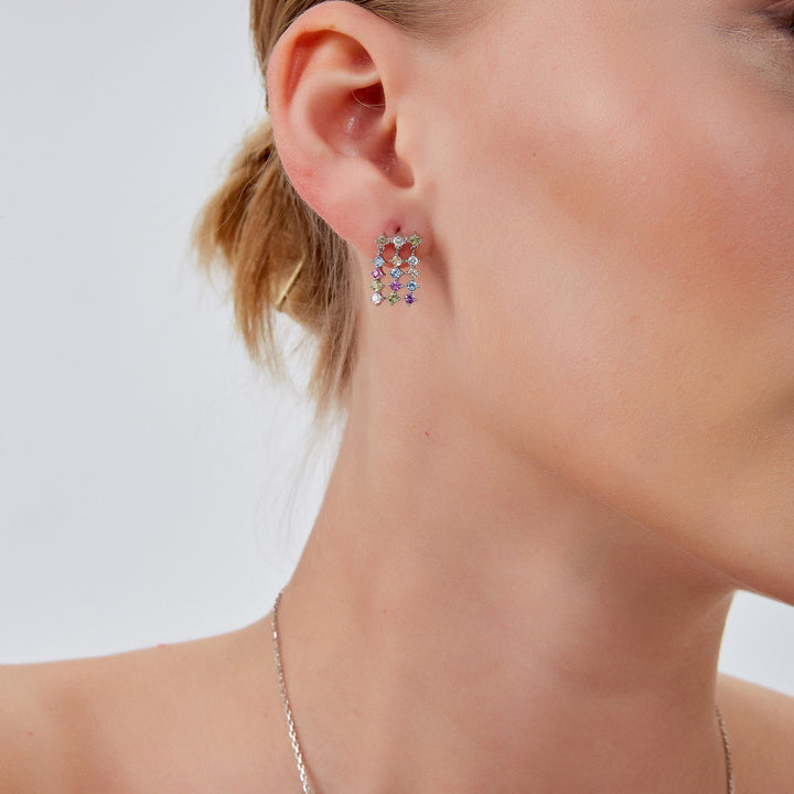 Colourful Rainbow Jewelled Sterling Silver Cluster Stud Drop Earring