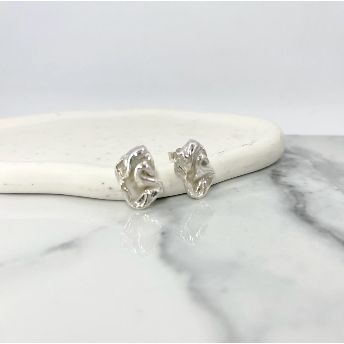 These handmade stud earrings are crafted from recycled sterling silver.