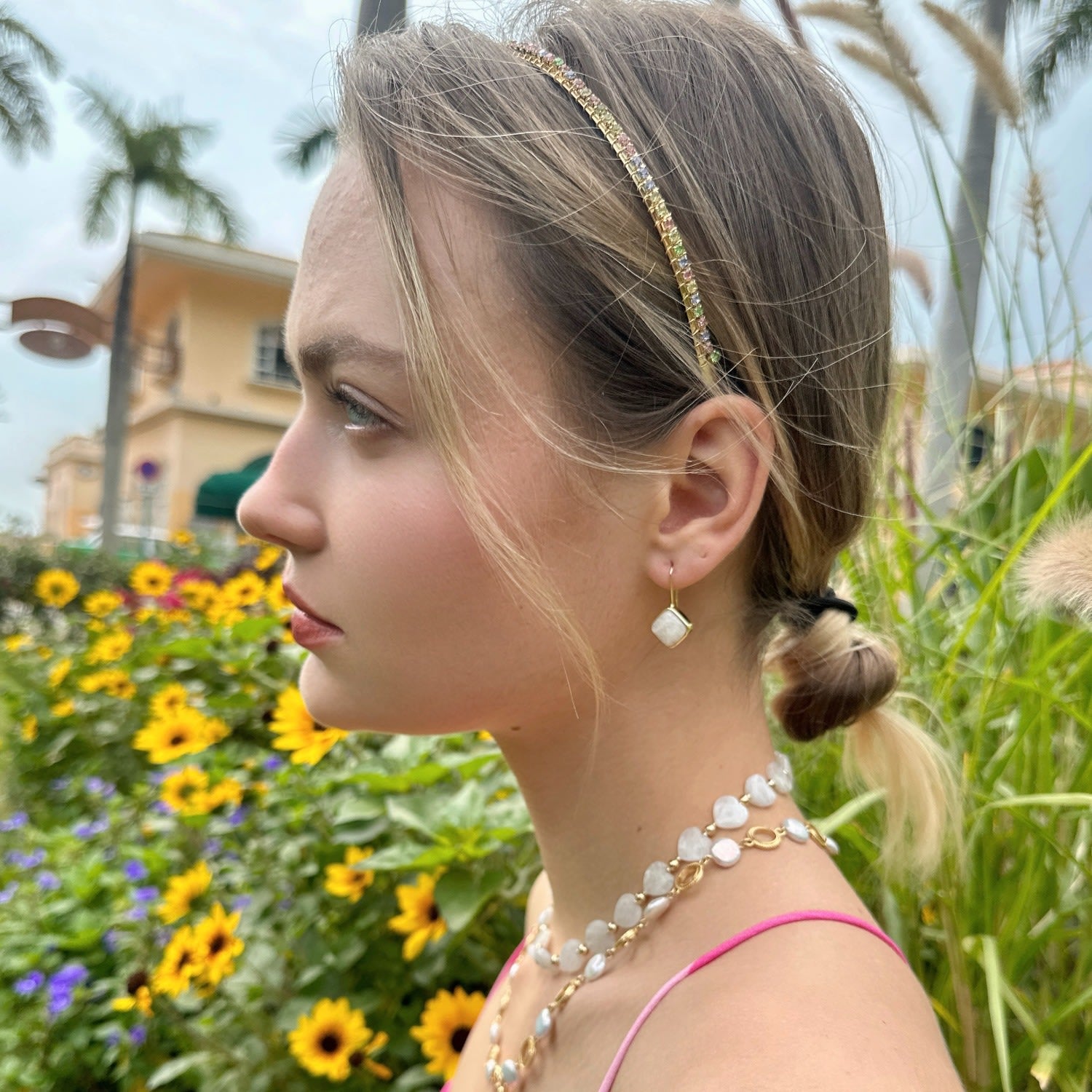 Minimalist Square Shaped Moonstone Hook Earrings by Farra are a sophisticated and captivating accessory. These earrings feature natural moonstones in a minimalist square shape, known for their ethereal glow and mesmerizing iridescence. The sleek hook design allows the moonstones to take center stage, creating a sense of effortless elegance. They are versatile enough to complement any outfit, whether for a special occasion or everyday wear.
