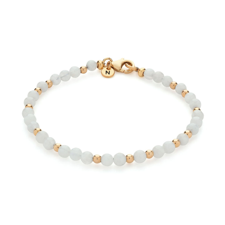 This Jewel Bead June Birthstone Bracelet by Nellou Jewellery celebrates the mystical glow of moonstone, June’s birthstone. With its soft iridescence, moonstone represents balance, harmony, and intuition. Accented with 18ct gold plating, this bracelet captures moonlit beauty in a modern design that transitions seamlessly from casual to formal. A thoughtful gift or treasured keepsake, it is an enchanting expression of personal meaning and elegance.