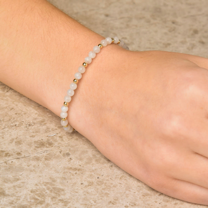 Jewel Bead June Birthstone Bracelet Gold Plated Sterling Silver - Rainbow Moonstone