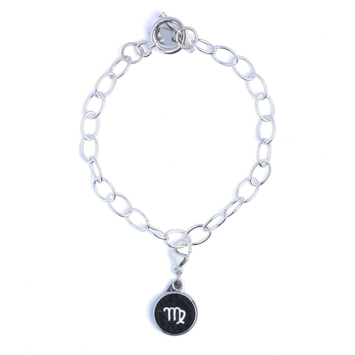 Virgo Zodiac Sterling Silver & Leather Curb Bracelet