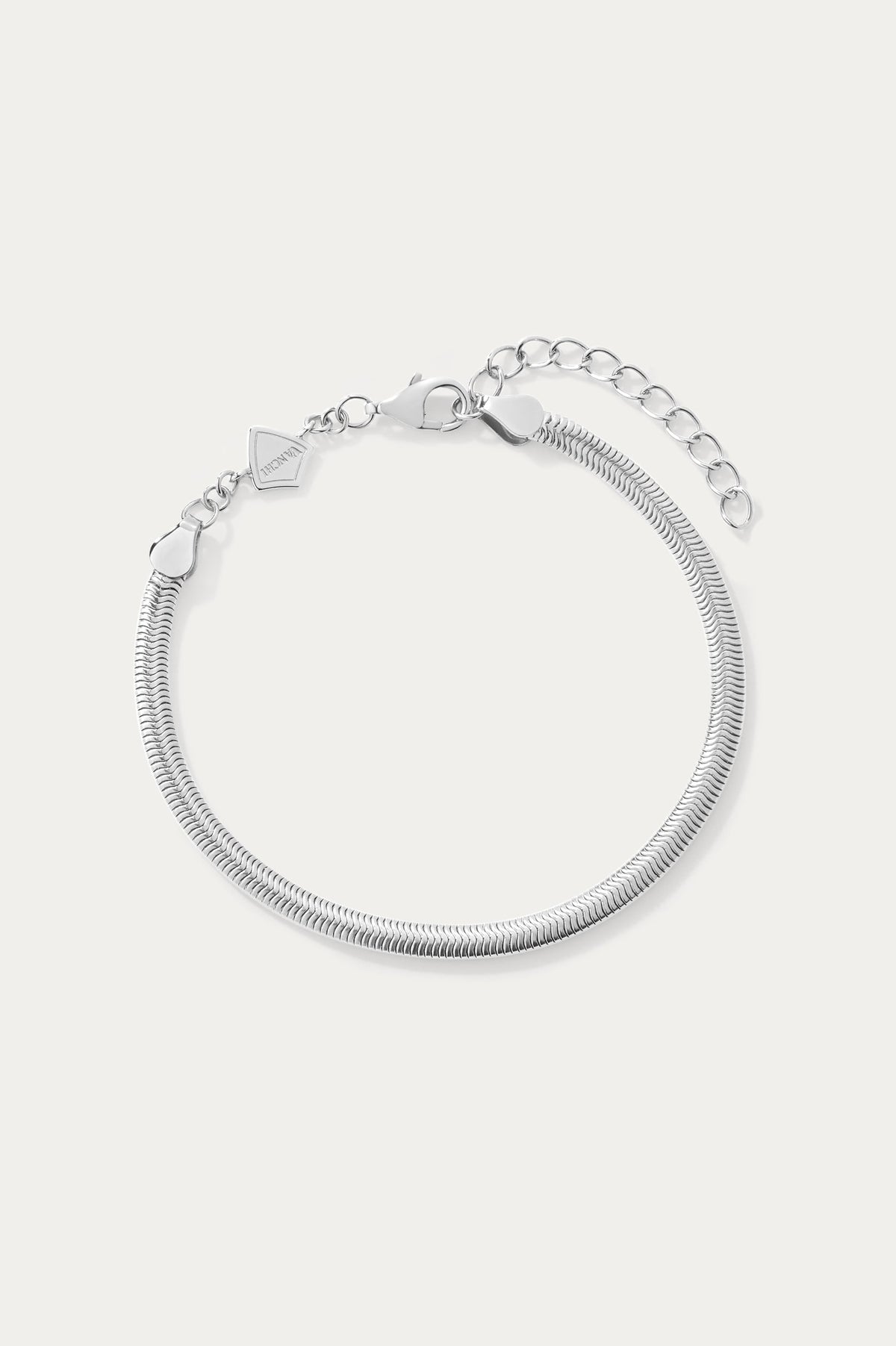 This Estelle Herringbone Chain Bracelet by Vanchi is a luxurious and timeless staple for your wardrobe. The sleek, 3mm herringbone chain has a beautiful weight and thickness that feels both substantial and elegant. It is perfect for layering to create a custom bracelet stack, attaching your favorite pendants, or simply wearing alone for a clean, sophisticated look. This piece is a versatile and essential addition that will effortlessly elevate your style rotation with its classic, enduring shine.