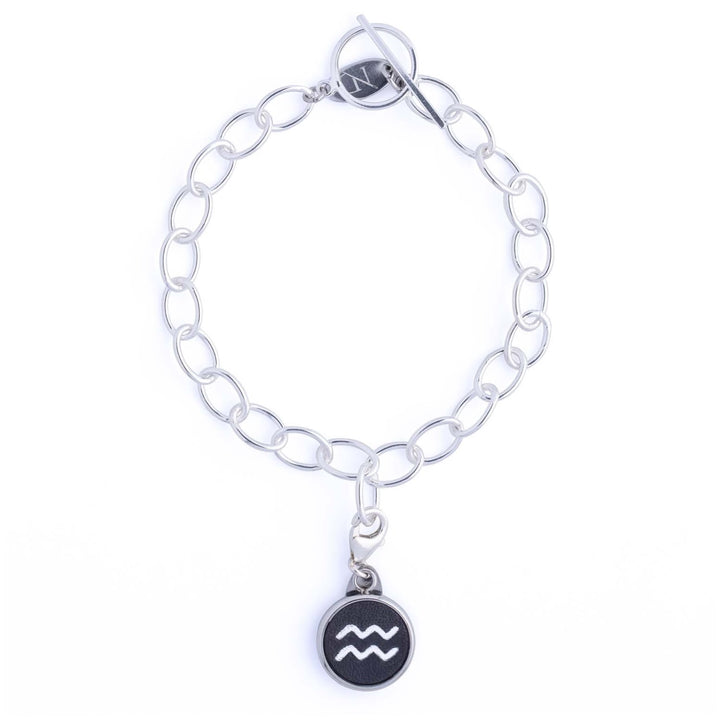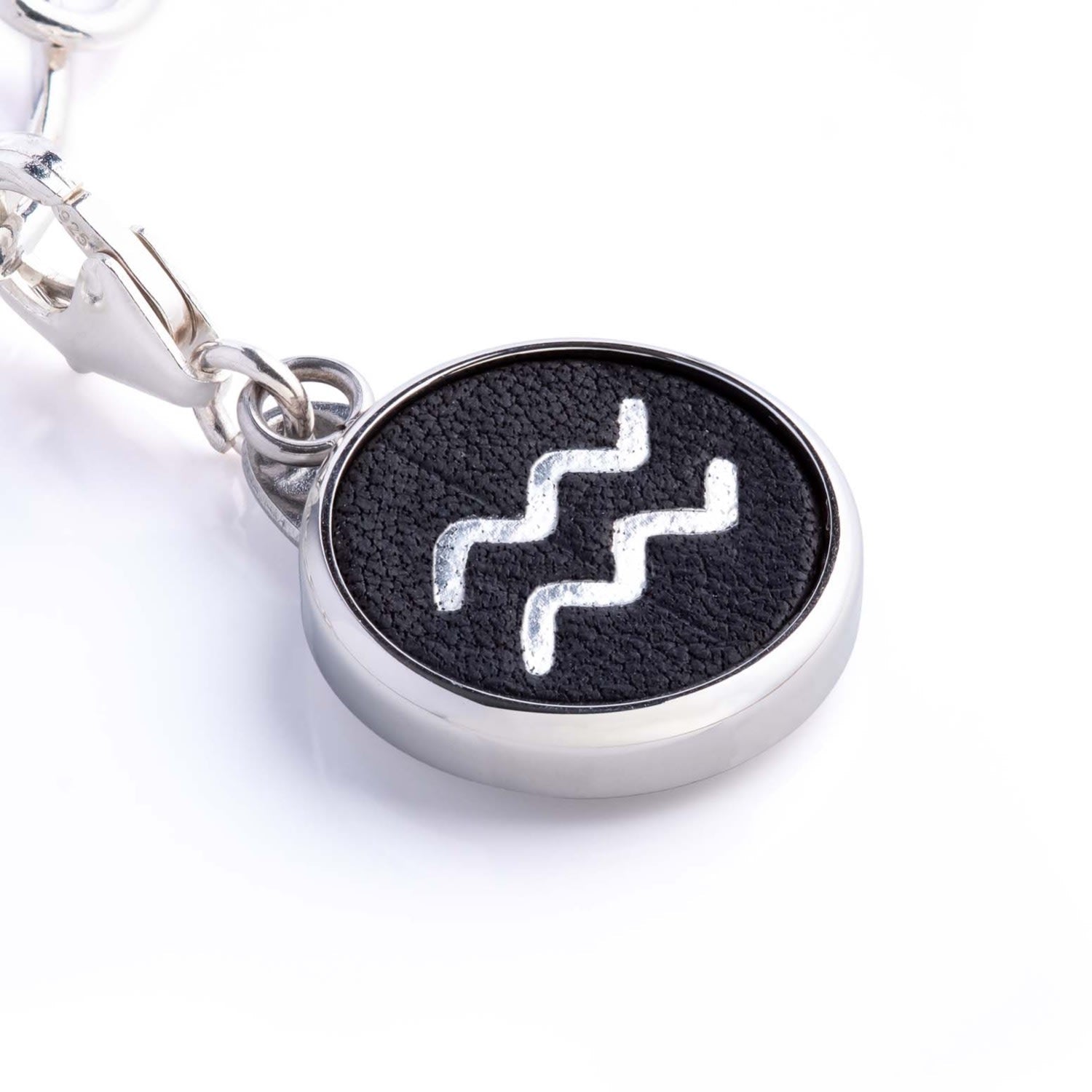Aquarius Zodiac Sterling Silver & Leather Curb Bracelet