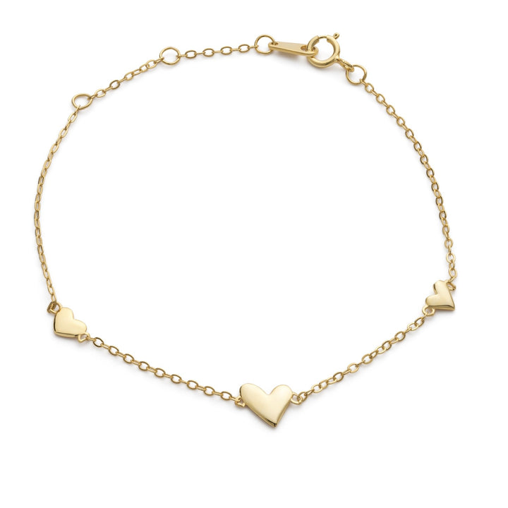 This bracelet is made from sterling silver that has been gold plated. It is lightweight and features a heart design. The length is adjustable from 14.5cm to 18cm.