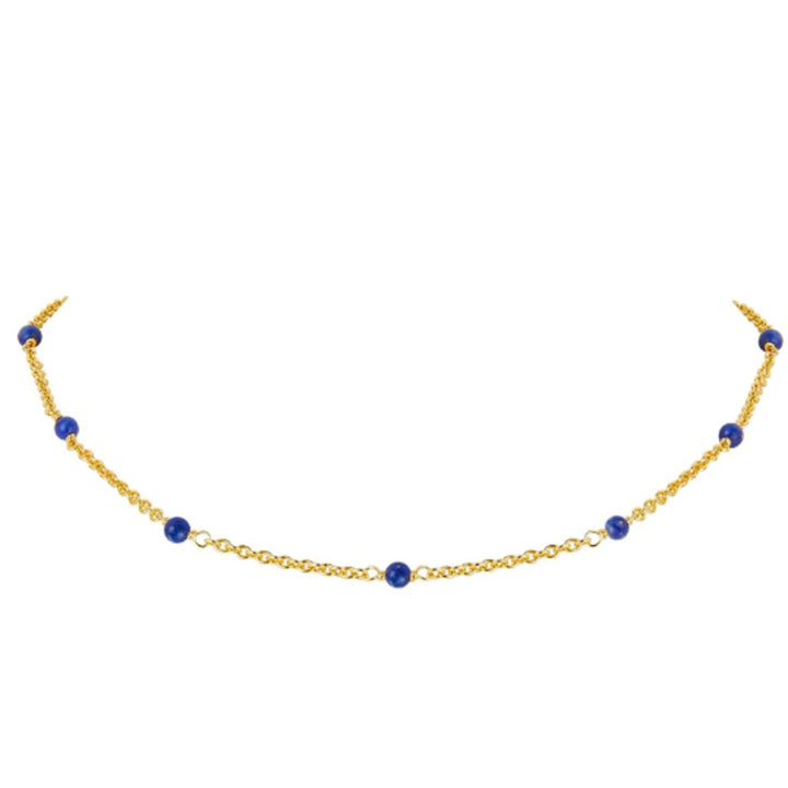 Ba Blue Lapis Beaded Gold Vermeil Silver Short Chain Necklace