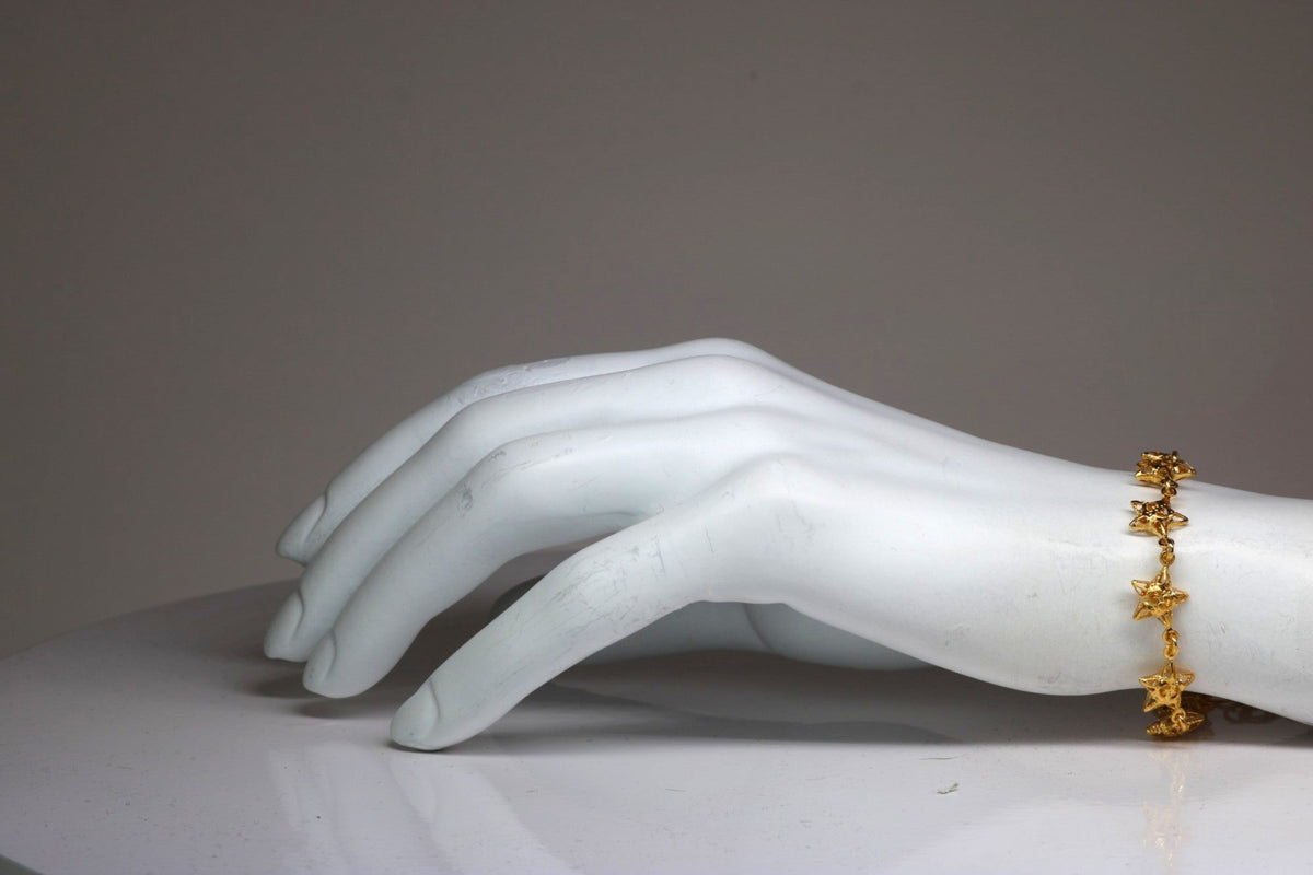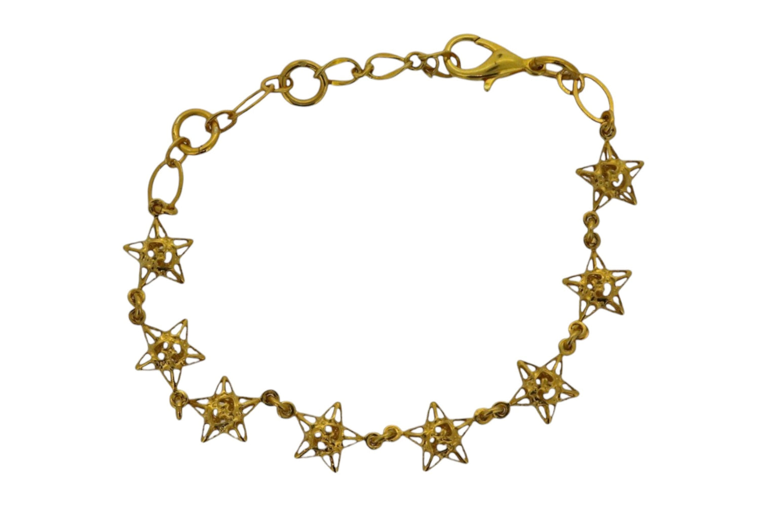 The Lustrous Bracelet by Vickisarge glimmers with celestial elegance. Interwoven filigree stars create a lightweight, ethereal silhouette that catches the light beautifully. A timeless bracelet that carries a sense of night-sky glamour, perfect from day to evening.