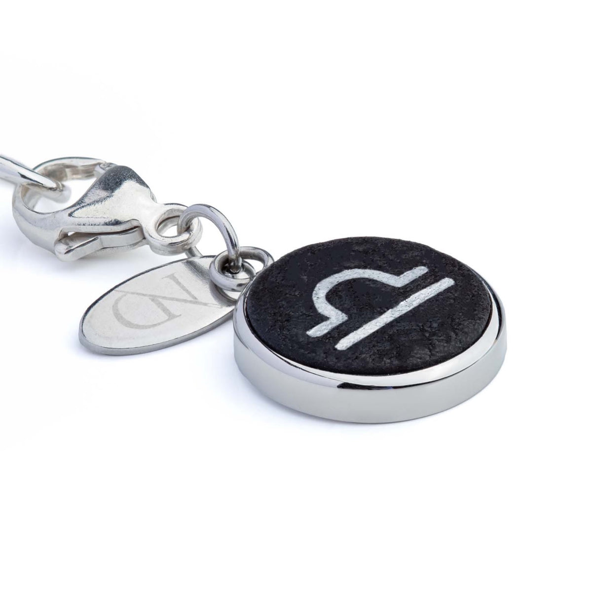 This bracelet is made from 100% recycled 925 sterling silver and 100% cow leather. The circular leather piece is embossed with the Libra zodiac star sign.