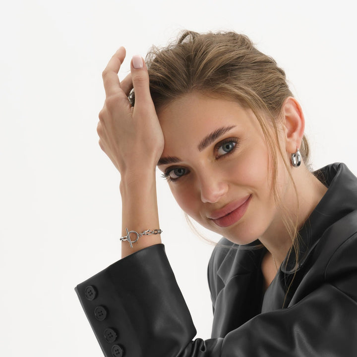 This Sterling Silver Chain Bracelet by Elk & Bloom embodies refined simplicity. With its bold rectangle curb link design, it makes a statement on its own yet layers beautifully with other pieces. Crafted entirely from solid sterling silver, it’s a timeless bracelet that transitions seamlessly from casual to elevated.
