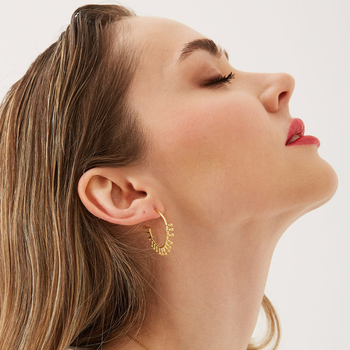 Sterling Silver Crown Hoop Earrings - Gold