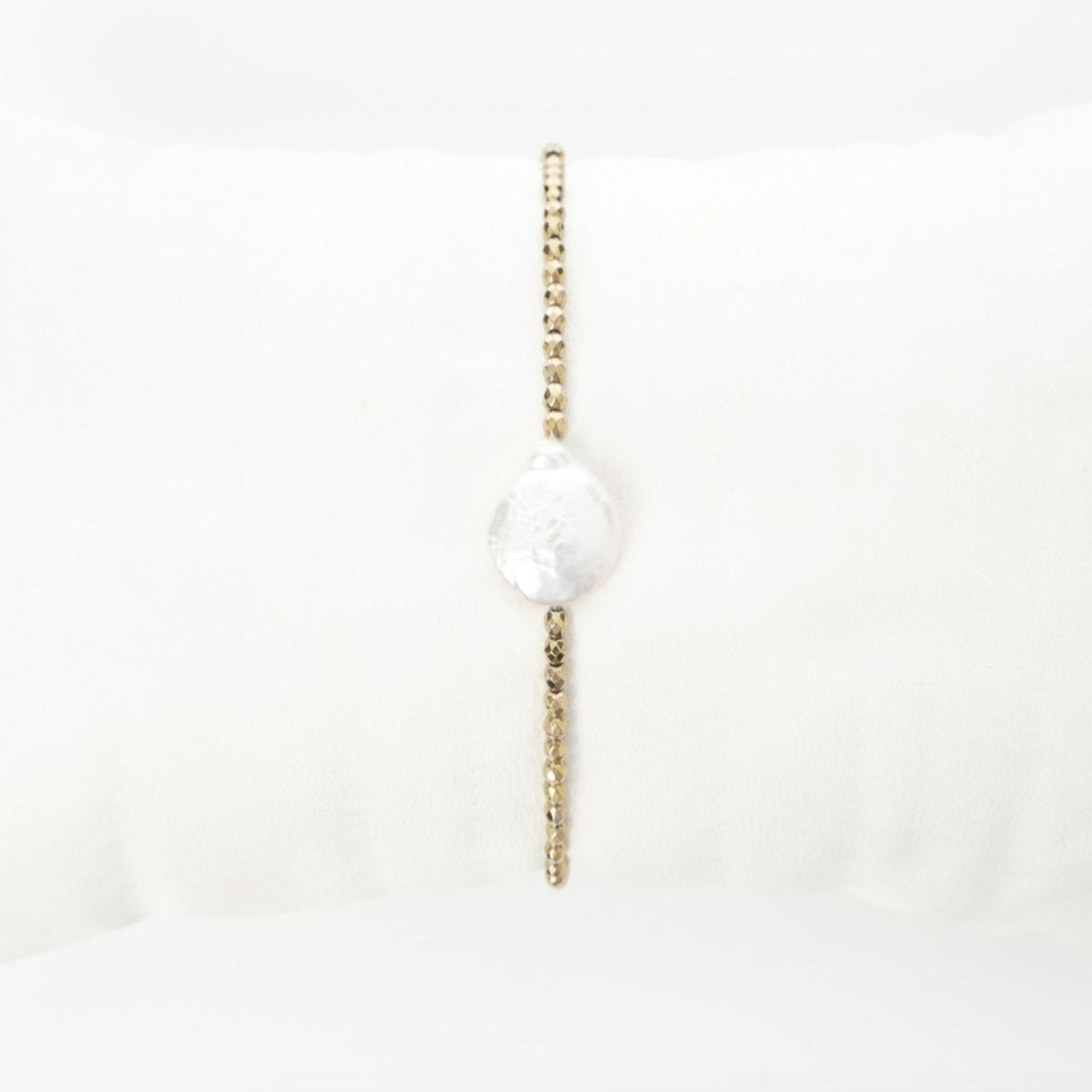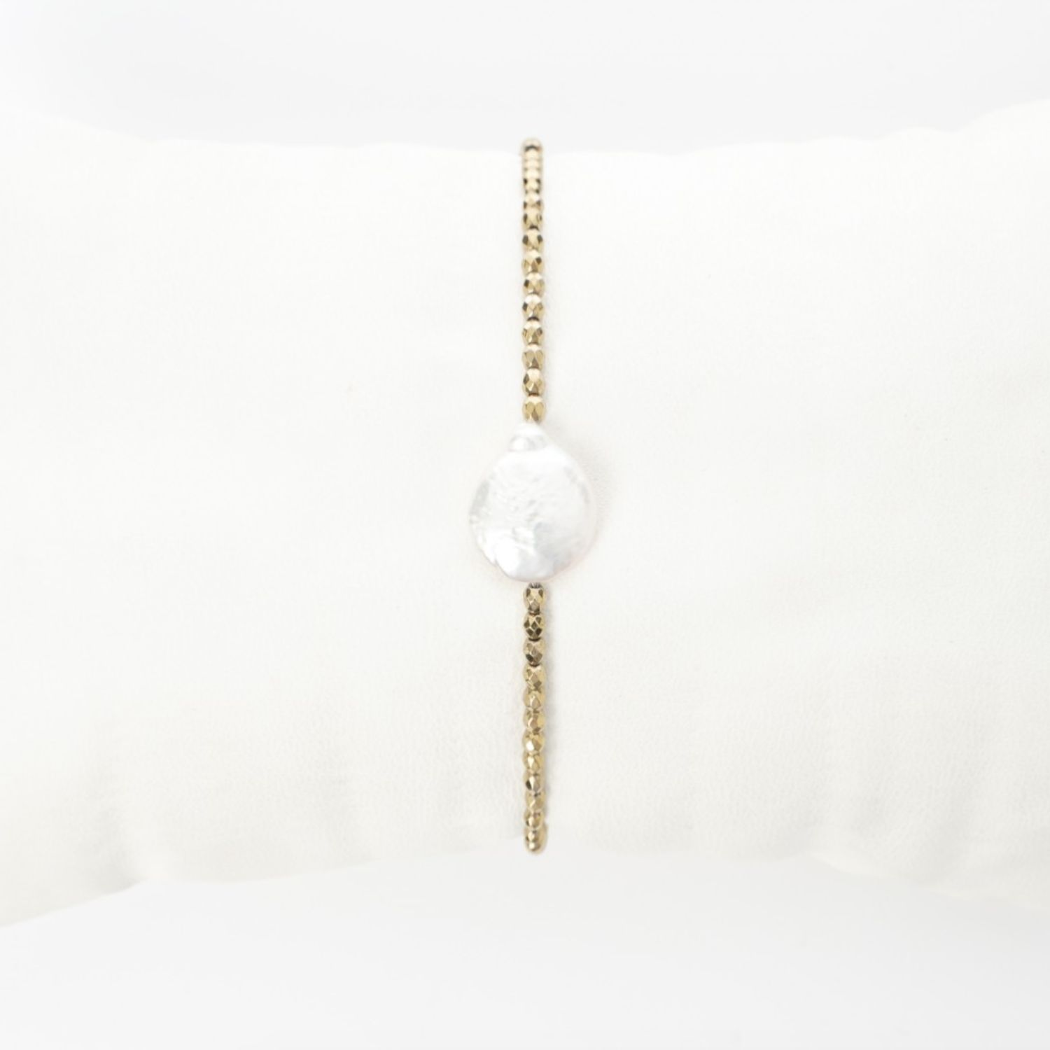 This Gold Bracelet by Margot Vii is a handcrafted artisanal jewel that highlights the beauty of nature. Adorned with hematite, Tahitian pearls, and mother-of-pearl, this bracelet adds an exotic and sophisticated touch to any outfit. Each piece is unique, reflecting the expertise and passion of the Tropezian craftsmen, making it a timeless and enduring addition to your collection.