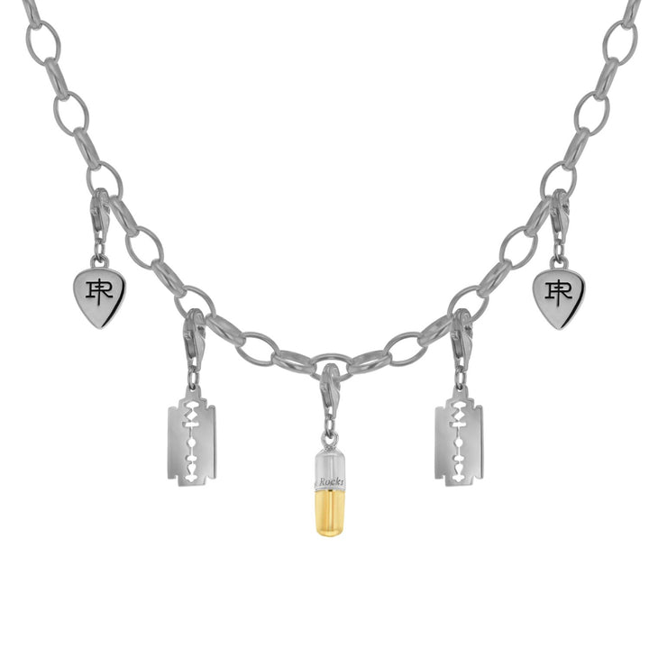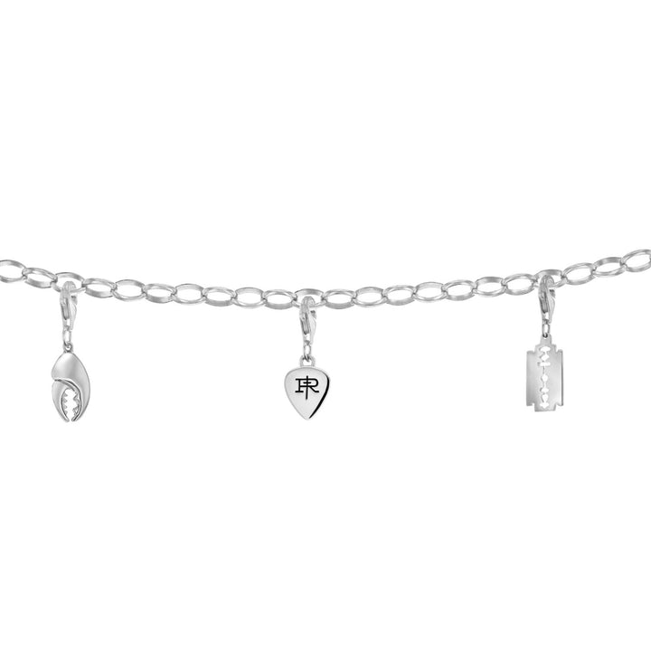 This Sterling Silver Plectrum Charm by True Rocks is the perfect way to start your charm collection and create a bespoke statement piece. The sterling silver and rhodium-plated plectrum charm can be hung on a variety of bracelets or necklaces, allowing for endless customization. It is a unique and edgy accessory for the wearer who wants to showcase their individuality and personal style. This charm is a versatile and stylish addition to any jewelry collection.