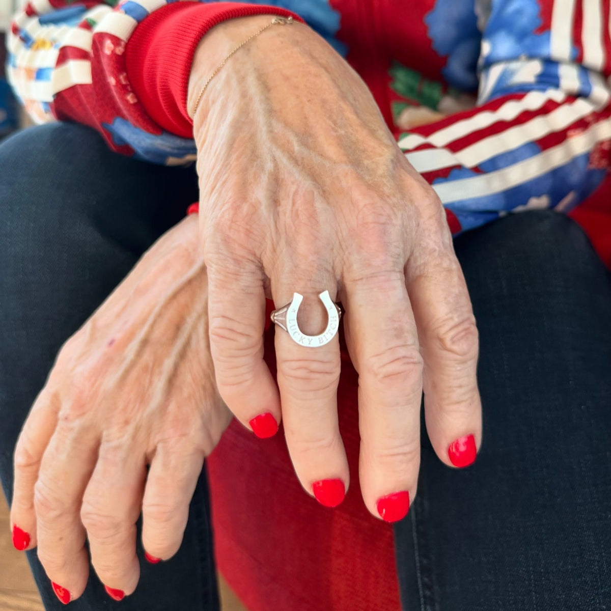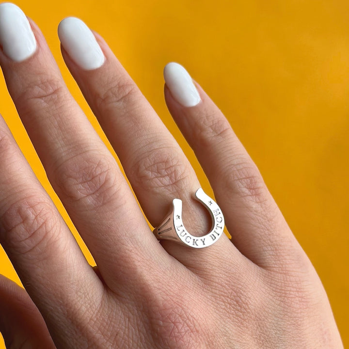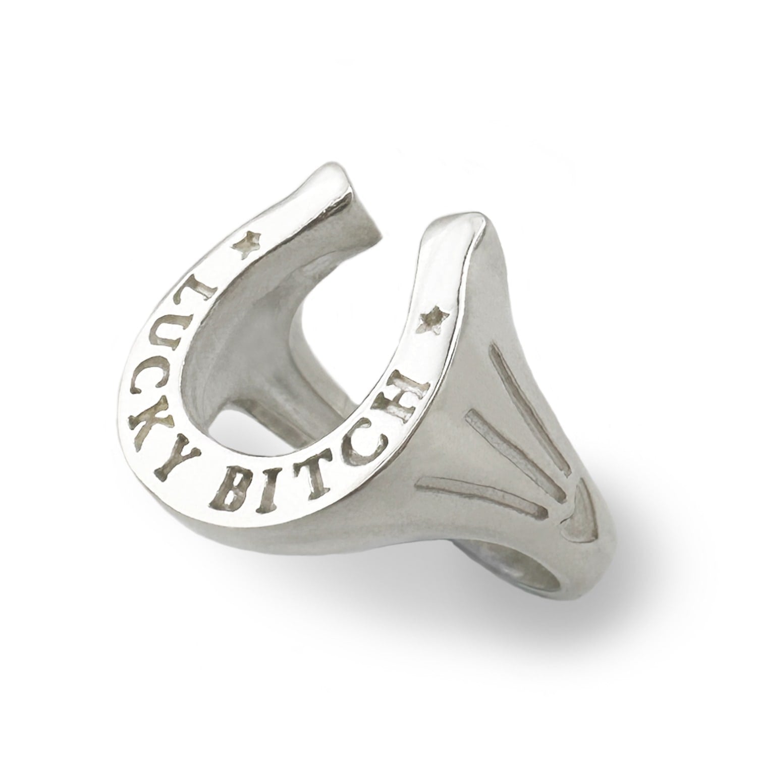 This The Lucky Bitch Ring by Litzi is a cheeky yet positive piece that serves as a modern gratitude reminder. Its unique name strikes a perfect balance between humor and positivity, encouraging the wearer to embrace the present moment. This ring is a fun and unconventional accessory that adds a touch of personality and good fortune to your everyday style.