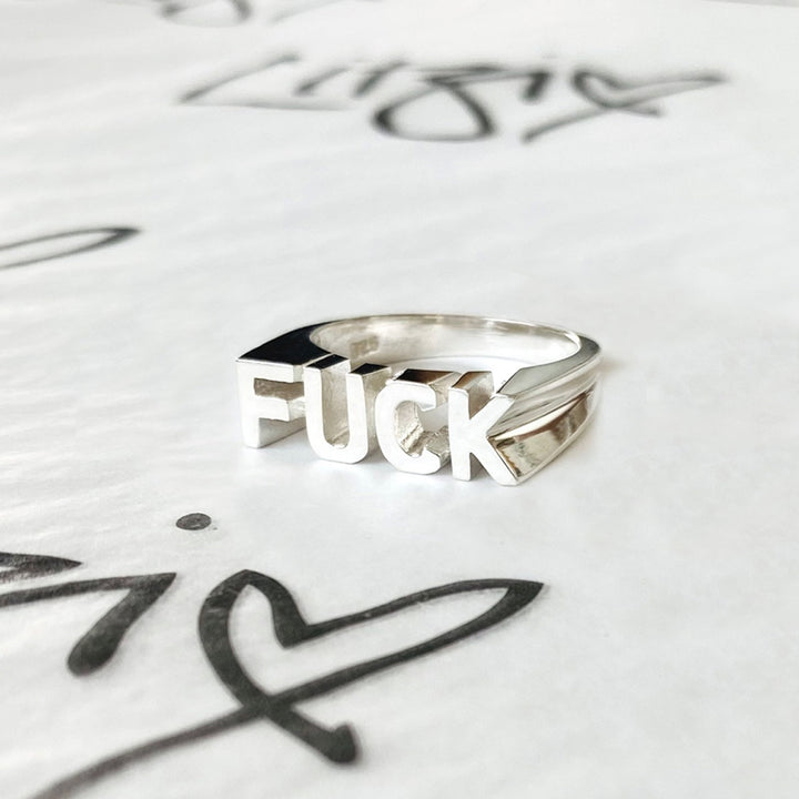 The “Fuck” Ring by Litzi is a bold and unapologetic statement piece that celebrates self-expression and raw emotion. This big and confident ring is for those who aren't afraid to say what they really feel. It embodies a rebellious and edgy spirit, making it a favorite among those who love to wear their heart on their sleeve. This ring is more than just an accessory; it’s a symbol of personal empowerment and authenticity, proving that jewelry can be a powerful medium for emotion.