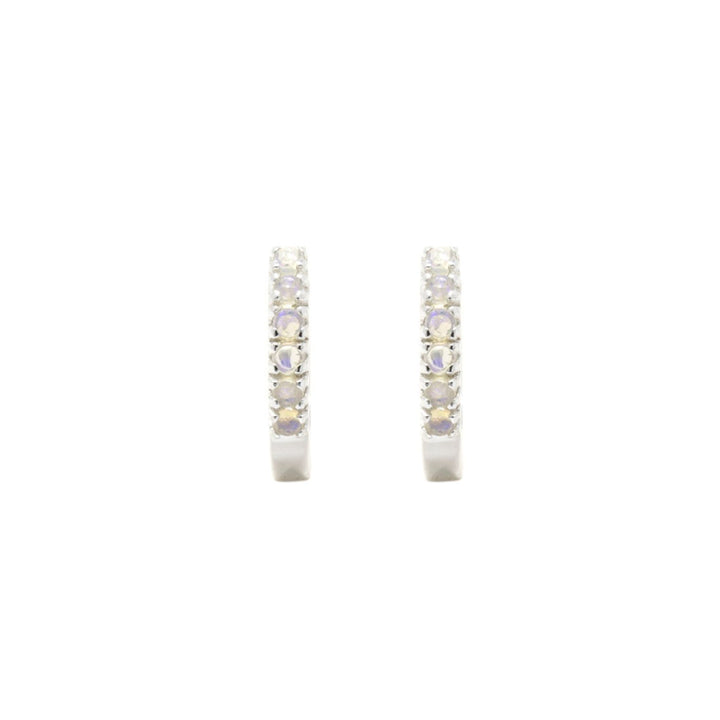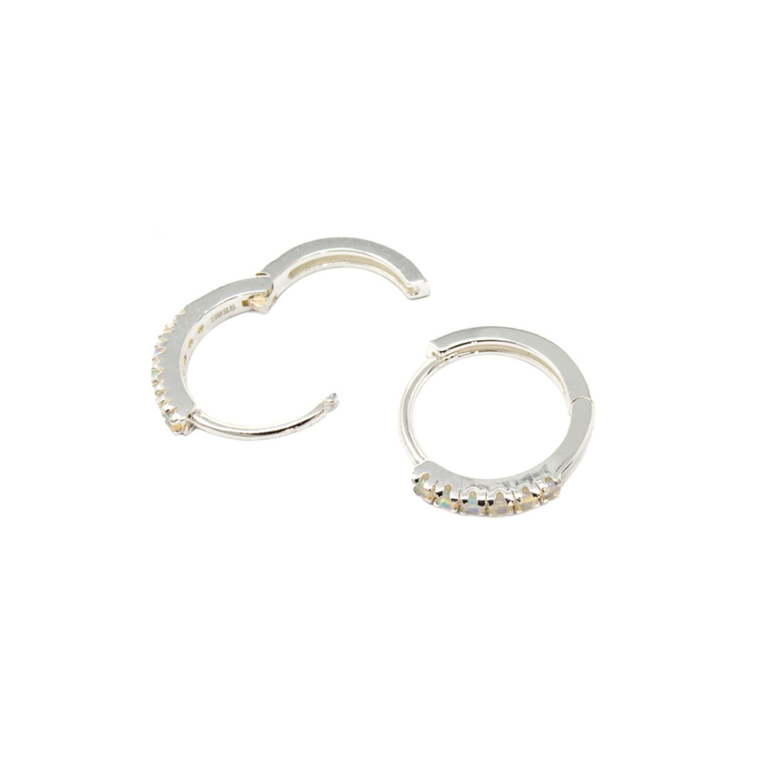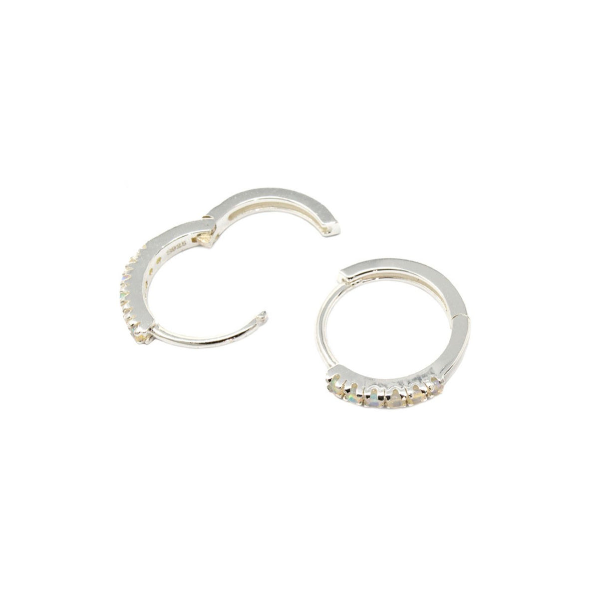 Cast in 925 solid sterling silver with opal gemstones. Handcrafted finish. Secure huggie closure.