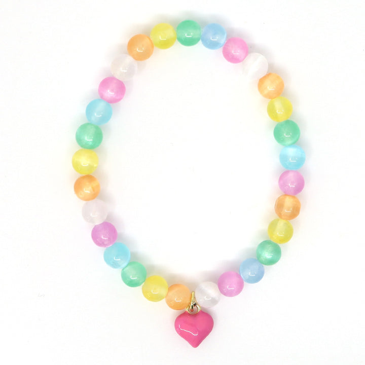 Heart Charm & Rainbow Selenite Beaded Bracelet