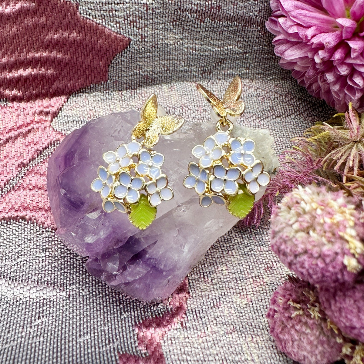 These Purple Flower With Butterfly Stud Earrings by Farra are a whimsical and elegant accessory. The glazed purple flowers are carefully crafted to capture the intricate details of real blossoms, conveying a sense of femininity and charm. The butterfly studs, a delightful addition, symbolize transformation, beauty, and freedom, making these earrings a meaningful and captivating choice. They are perfect for adding a touch of playful grace and a pop of vibrant color to your everyday style.
