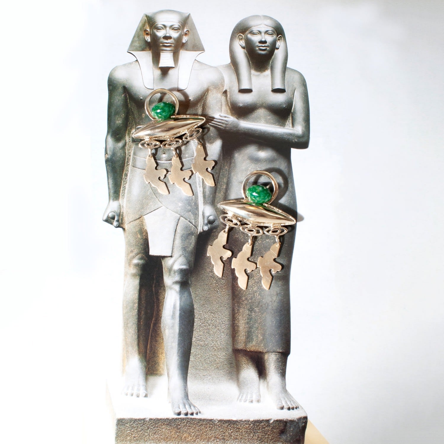 These Horus Earring In Coral by Castlecliff are a stunning celebration of Egypt Revival, designed to feel like a timeless artifact from a forgotten era. The metallic bird fringe sways with a captivating movement, while the large vintage glass stones add a luxurious, antiquated feel. Each pair is a unique statement piece that speaks to the eternal beauty and mystery of an ancient civilization. The handcrafted nature of these earrings means that every slight variation is a testament to the artisan's touch, imbuing them with a soulful, one-of-a-kind character.