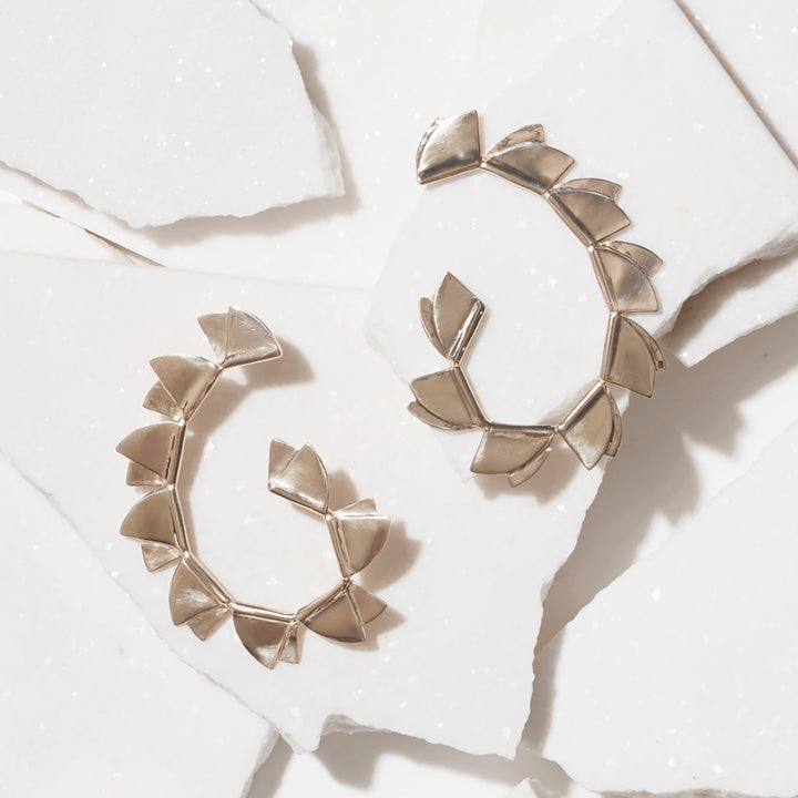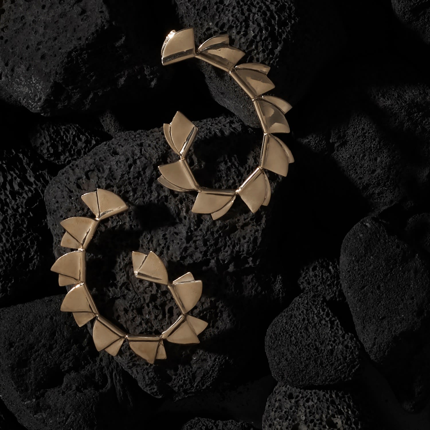 These Seismic Earrings by Castlecliff are a unique and sculptural accessory with a strong, dynamic design. The earrings feature metallic waves that undulate along swirling fault lines, a design carefully re-created from hand-forged originals. Made from certified 100% recycled brass and finished with sterling silver posts, these earrings are a bold, effortless, and sustainably made statement piece handcrafted in NYC.