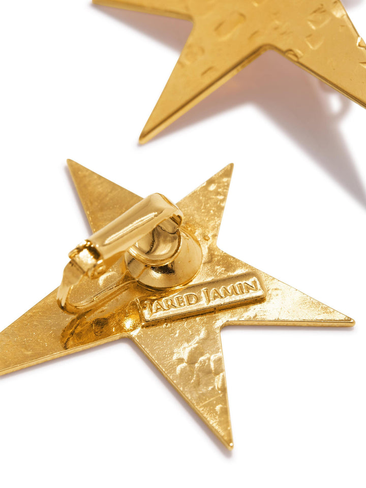 These Gold Shooting Star Clip On Earrings by Jaredjamin are a best-selling accessory that adds a timeless sparkle to any look. The single star design features a unique hammered texture, enhancing its radiant shimmer. These earrings are elegantly finished in 18K gold plating, making them perfect for various holiday occasions or for adding a festive touch to your everyday style. Their clip-on design offers a hassle-free and comfortable wearing experience.
