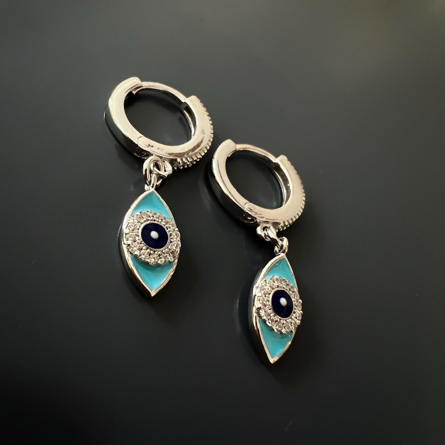 Turquoise Sparkly Evil Eye Sterling Silver Earrings - Turquoise