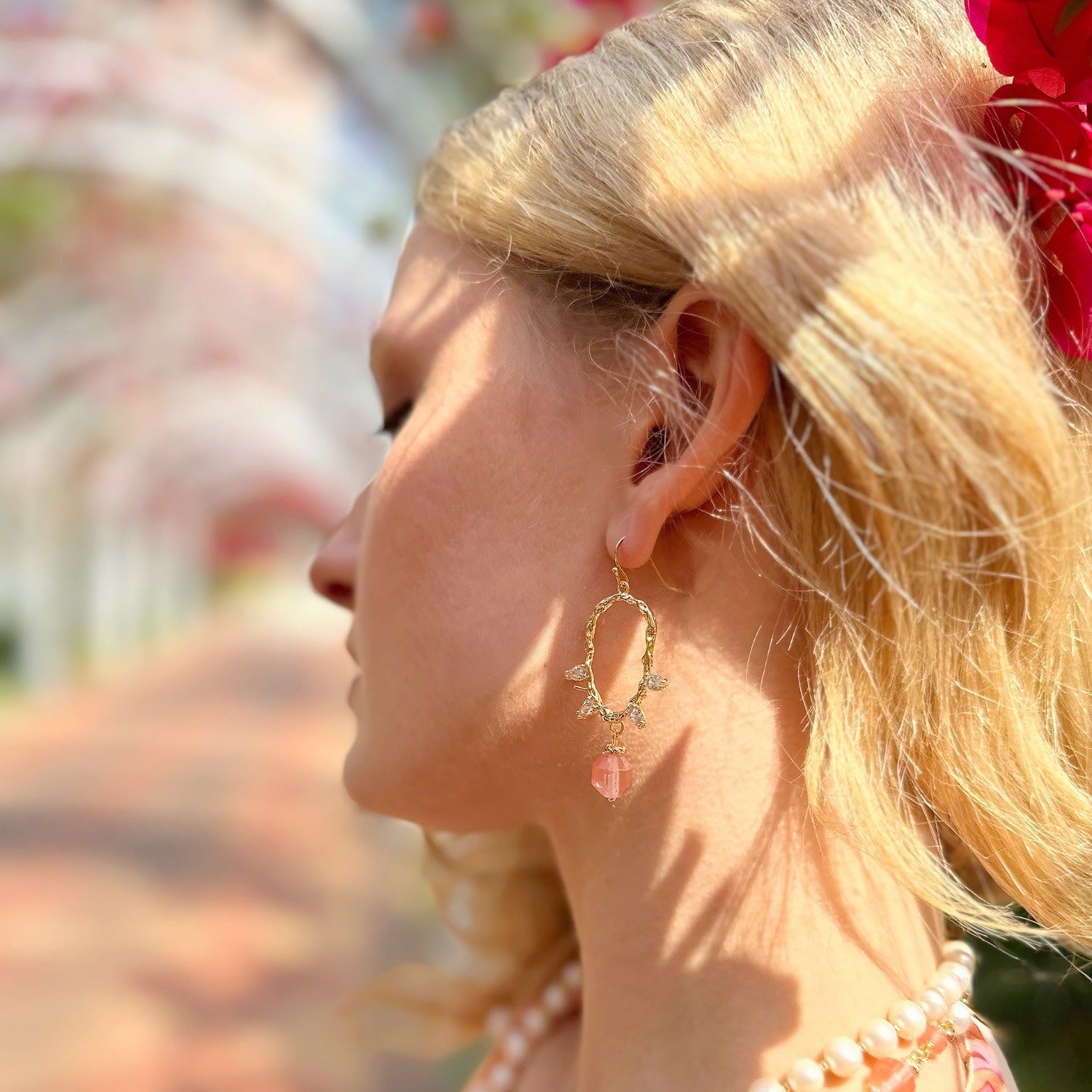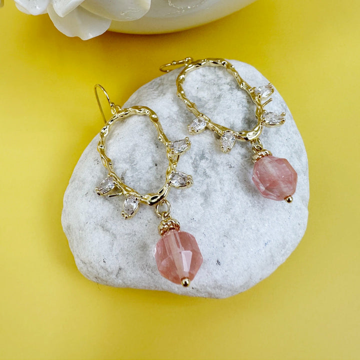 Watermelon With Zricon Dangle Earrings