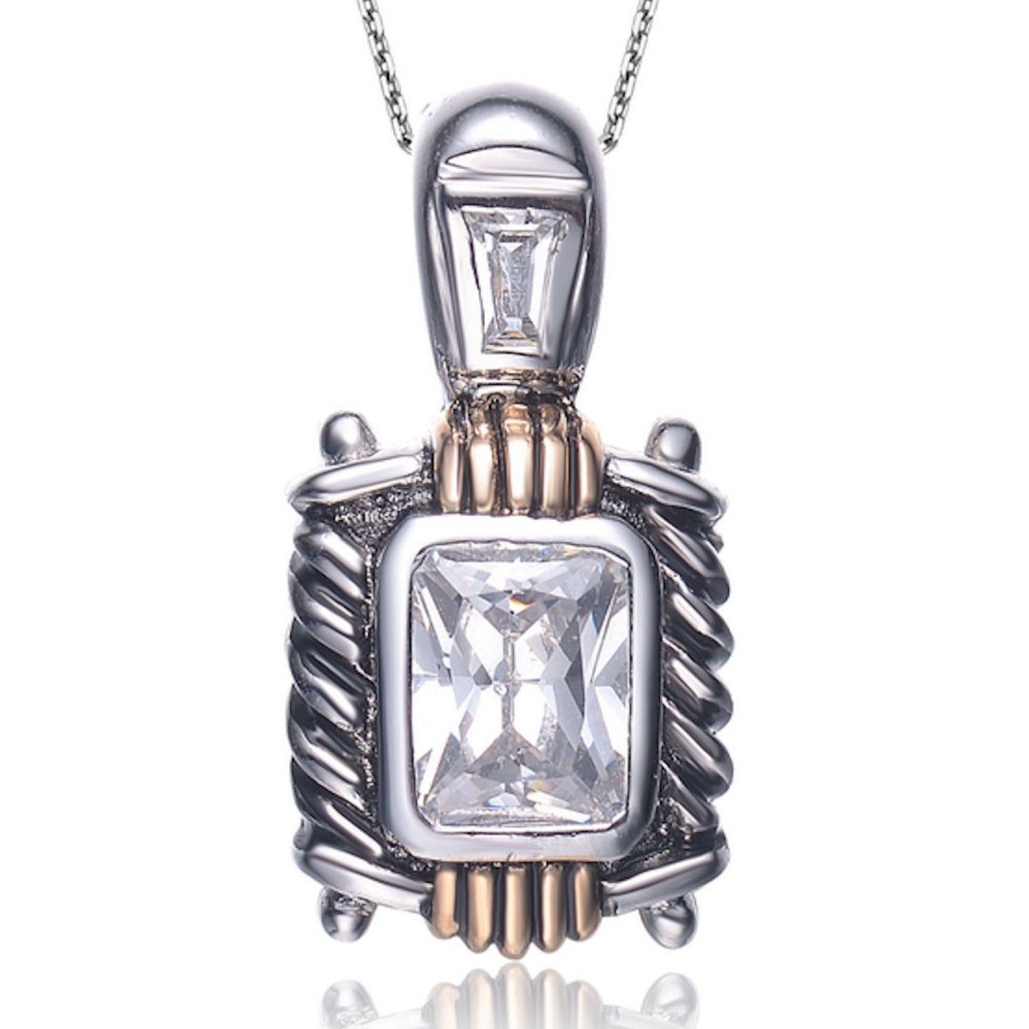 This Sterling Silver Cubic Zirconia Crest Necklace by Genevive Jewelry has an old-world charm that is both elegant and eye-catching. The crest design, with its sparkling cubic zirconia core, creates a sophisticated and timeless look. Whether worn for a special occasion or as a statement piece, this necklace is sure to turn heads and capture attention.