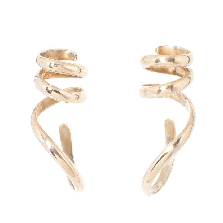 These earrings are handcrafted from 100% certified recycled brass with sterling silver posts. They feature a sculptural spiral design and are unplated to develop a rich patina over time.