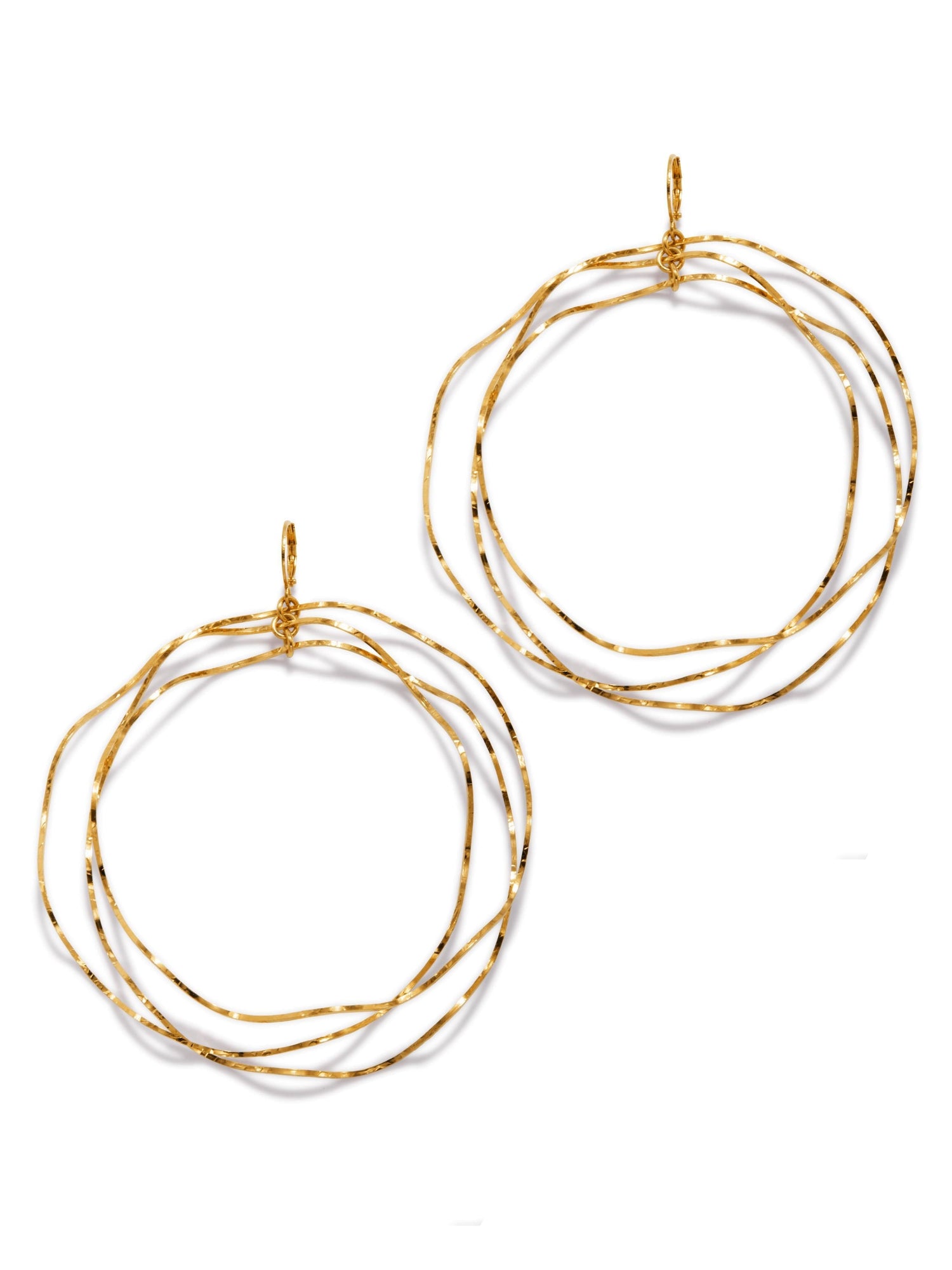 Gold Triple Wavy Halo Hoop Earrings