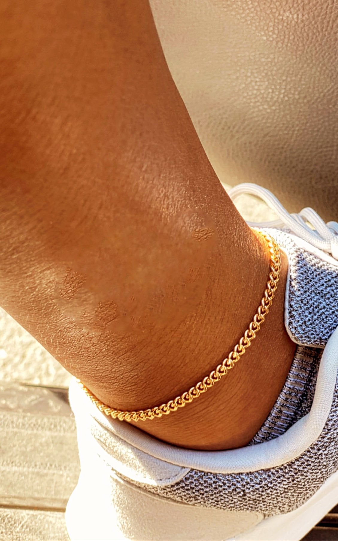 This Gold Nola Anklet Bracelet by Gwen Beloti Jewelry blends dainty charm with bold edge. Chunky yet versatile, it transitions seamlessly from sneakers to heels, offering effortless everyday style. Built for durability, it’s a chic essential designed to last.
