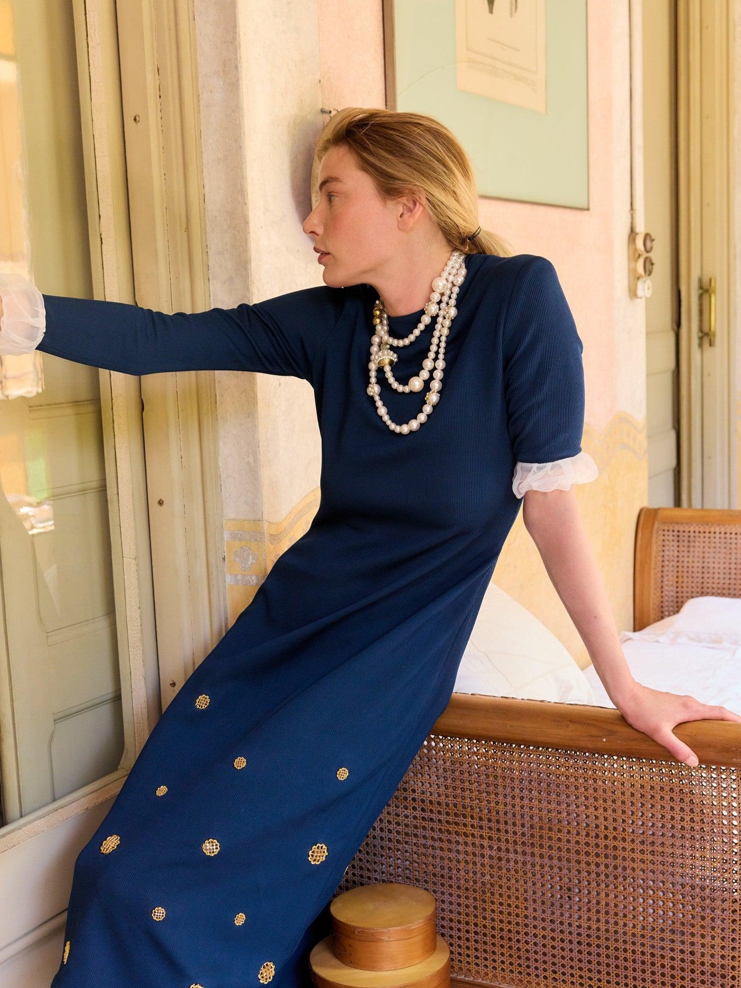 This Valentina Necklace in Green by Sita Nevado is vibrant and bold. Pearl beads with crystal cores are arranged with varying sizes, while square crystals at the ends add a sculptural finish. With its generous length, it can be styled long, doubled, or layered, offering versatile expression for contemporary glamour.