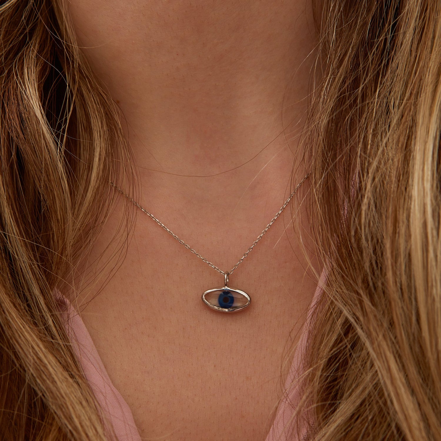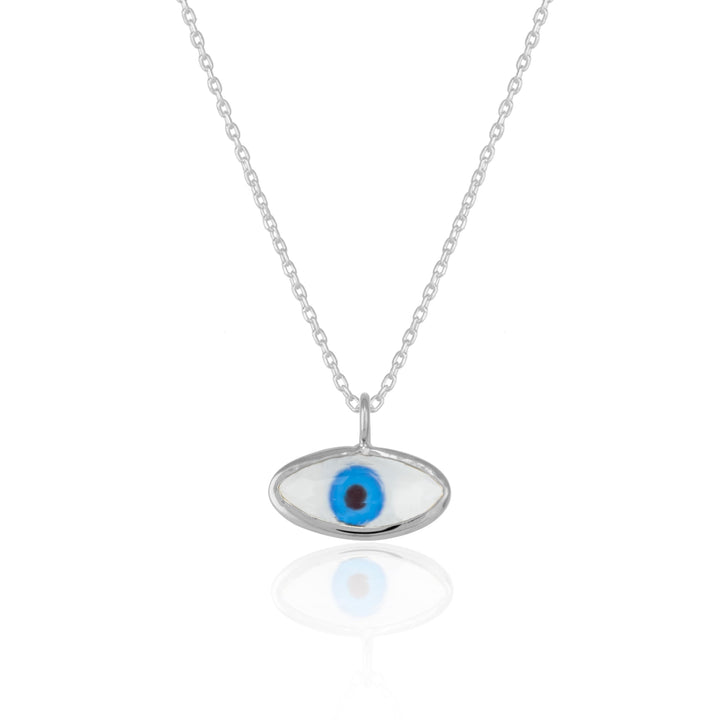 Transparent Glass Evil Eye Sterling Silver Necklace - Silver
