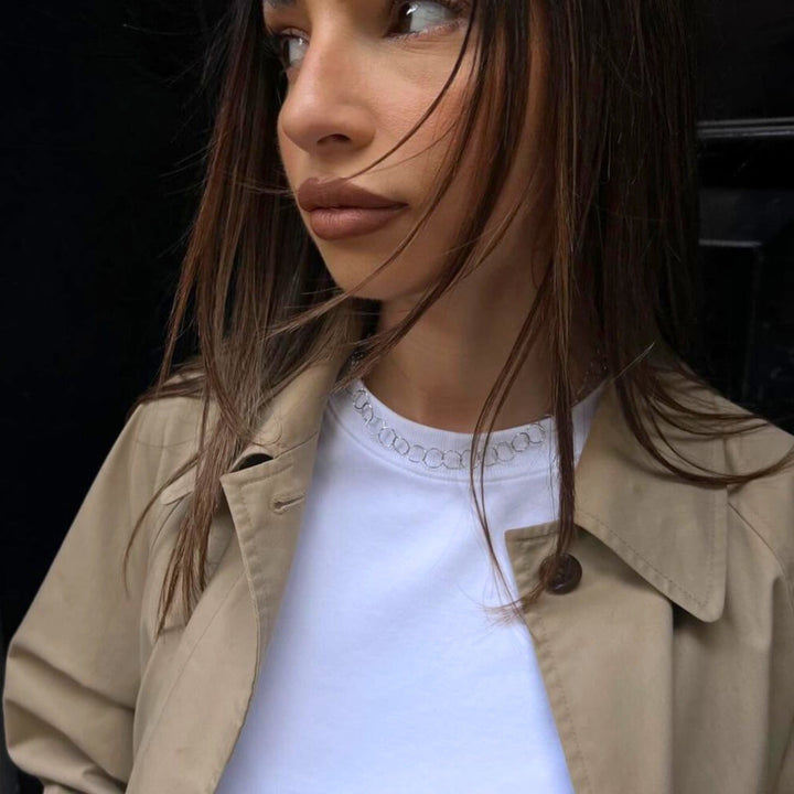 This necklace is crafted from 100% sterling silver with a circle hoops chain design.