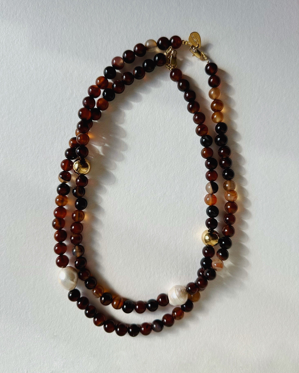 This Bruna Necklace by Gem Island exudes warmth and tenderness with a blend of Baroque pearl and agate. The luminous pearl symbolizes maternal love, while agate represents luck, sincerity, and focus. A necklace rich in symbolism and elegance, it resonates with grace and empowerment.