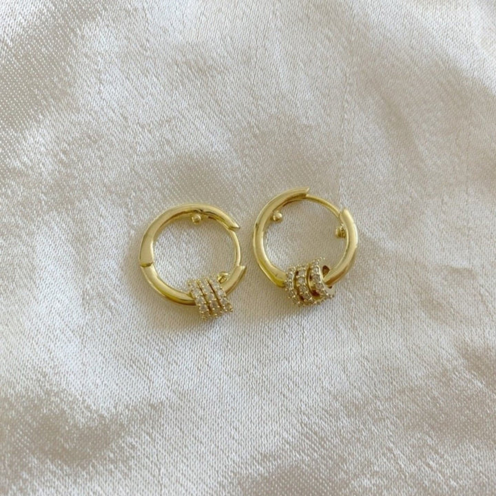 These Sterling Silver CZ Jewelled Hoops in Gold by Spero London exude refined sparkle. Fashioned with multiple interlocking rings, each adorned with dainty cubic zirconia stones, they bring subtle glamour to your look. Their polished finish and secure hinged-back closure make them both elegant and practical, while their versatile design allows them to be worn alone or paired with other silver essentials for a layered, chic effect.