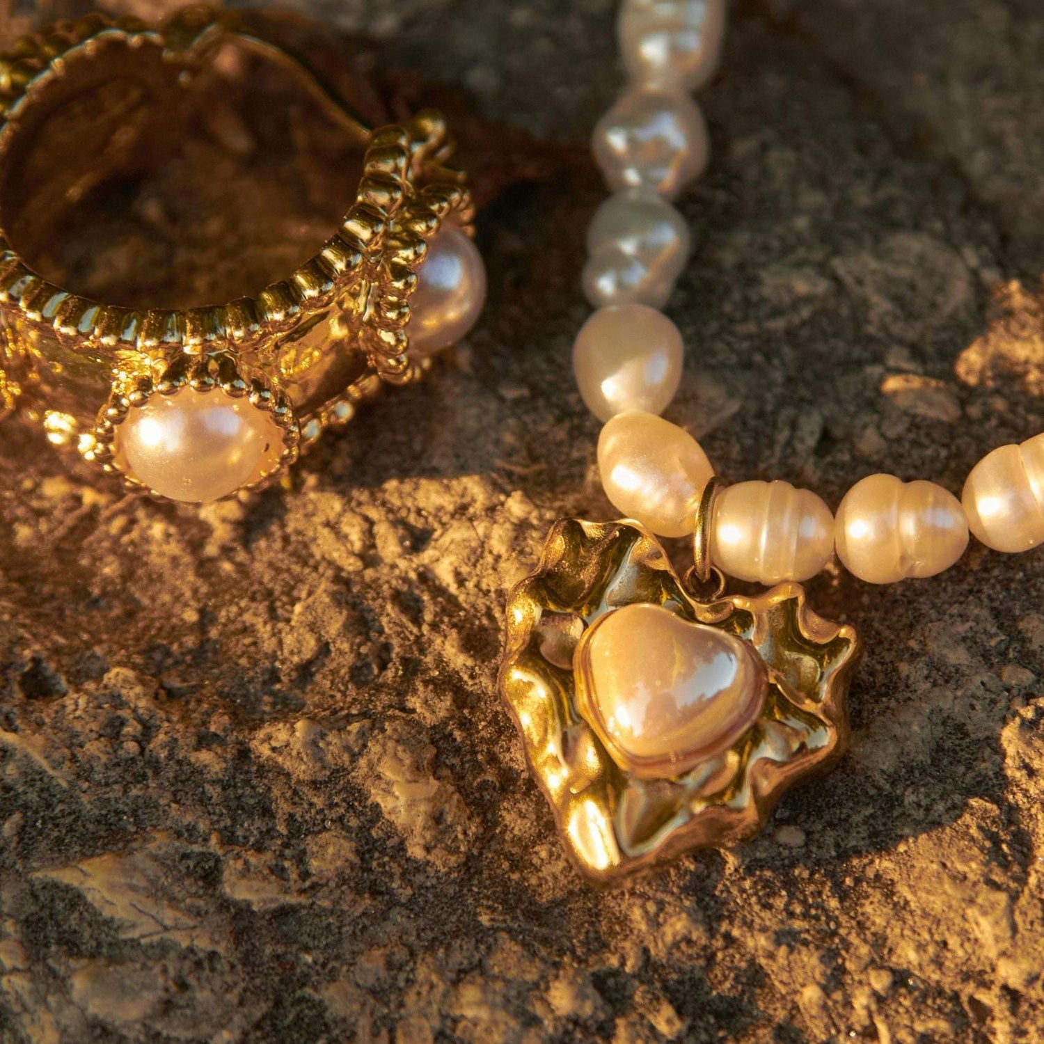 These oversized hoop earrings are made with a stainless steel base and a thick layer of high-quality 14k gold plating. They feature freshwater pearls.