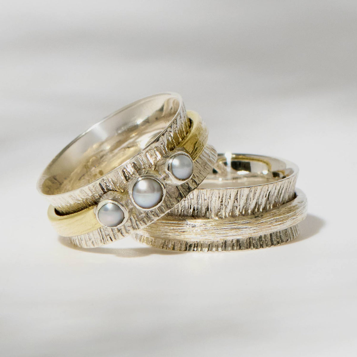 This spinning ring is handmade from sterling silver.