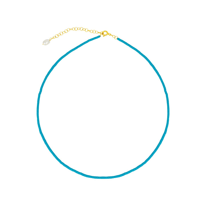 The Natural Turquoise Sterling Silver Necklace with Pearl by Mejoma is a stunning and timeless accessory. It is crafted with a vibrant natural turquoise stone complemented by a delicate pearl, creating a unique and eye-catching piece. Made from 100% sterling silver, this necklace adds a touch of natural beauty to any outfit.