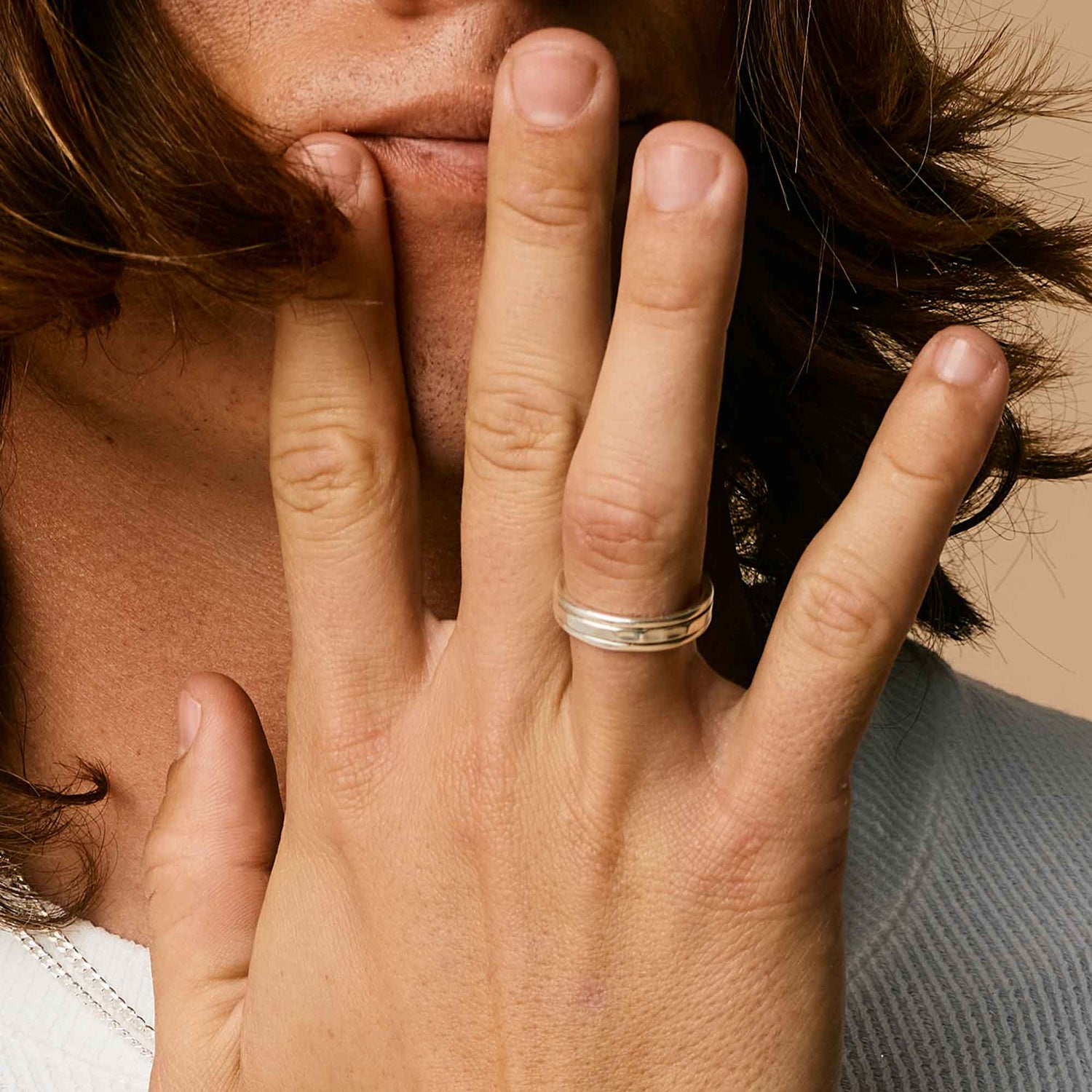 This unisex spinning ring is handmade from sterling silver with a hammered detail.