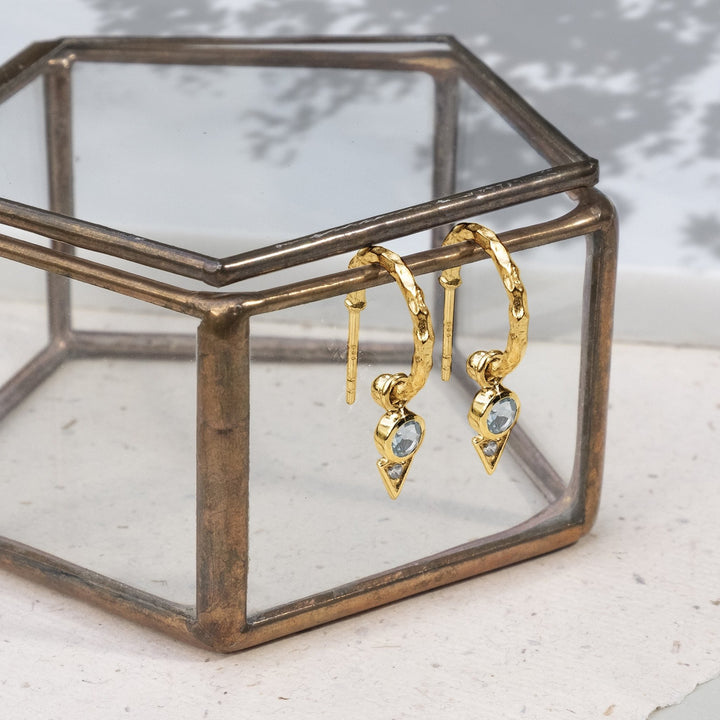 Trikona Peace Gold Vermeil Hoop Earrings - Blue Topaz