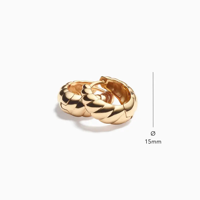 These Gold Croissant Hoop Earrings by Nazzar are a bold and chic statement piece, inspired by the classic croissant shape. Their twisted, sculptural design adds a modern and sophisticated touch to any look, blending contemporary style with timeless elegance. These hoops are not only a fashionable accessory but also a durable one, made from recycled sterling silver with a thick layer of high-quality gold plating. Waterproof, tarnish-free, and hypoallergenic, they are built to last and provide a touch of effortless luxury for every occasion.