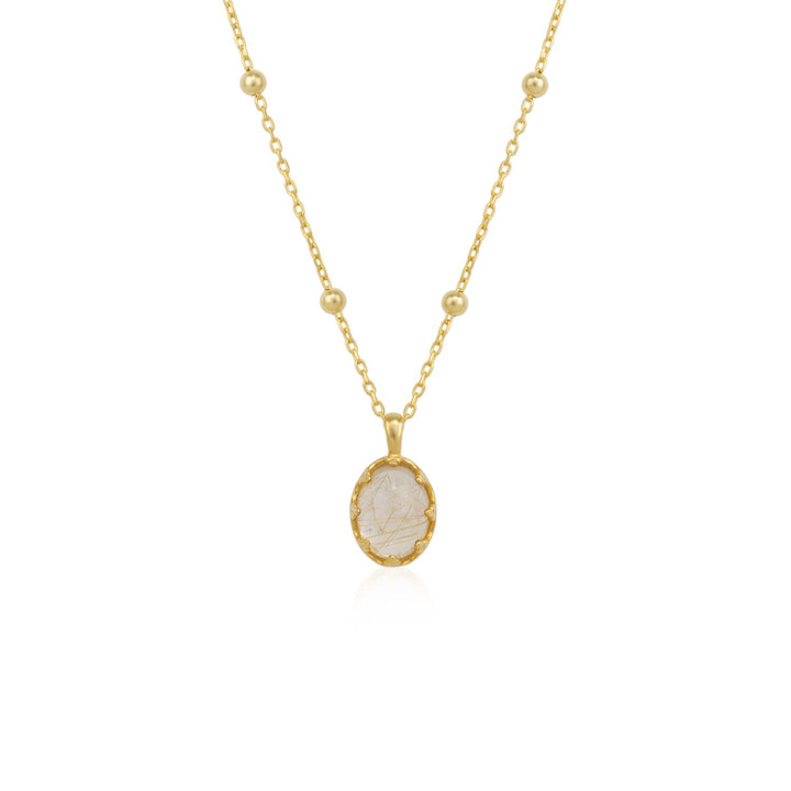 This Moonstone Sterling Silver Pendant Necklace With Beaded Chain - Transparent by Spero London is a beautiful and meaningful gift. This necklace is handmade in 925 recycled sterling silver and features a dazzling moonstone pendant hanging on a dainty beaded chain. The entire piece is dipped in a luxe gold tone, giving it a majestic look. With an adjustable lobster claw closure, this lightweight and sturdy necklace is perfect for gifting on any special occasion.