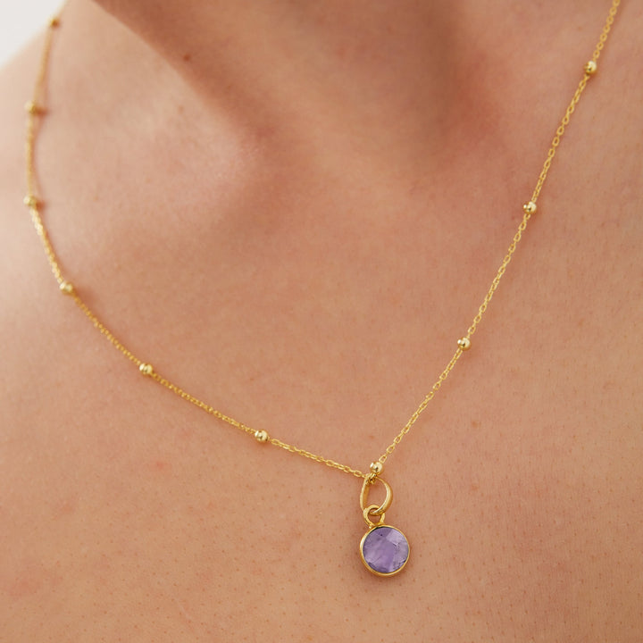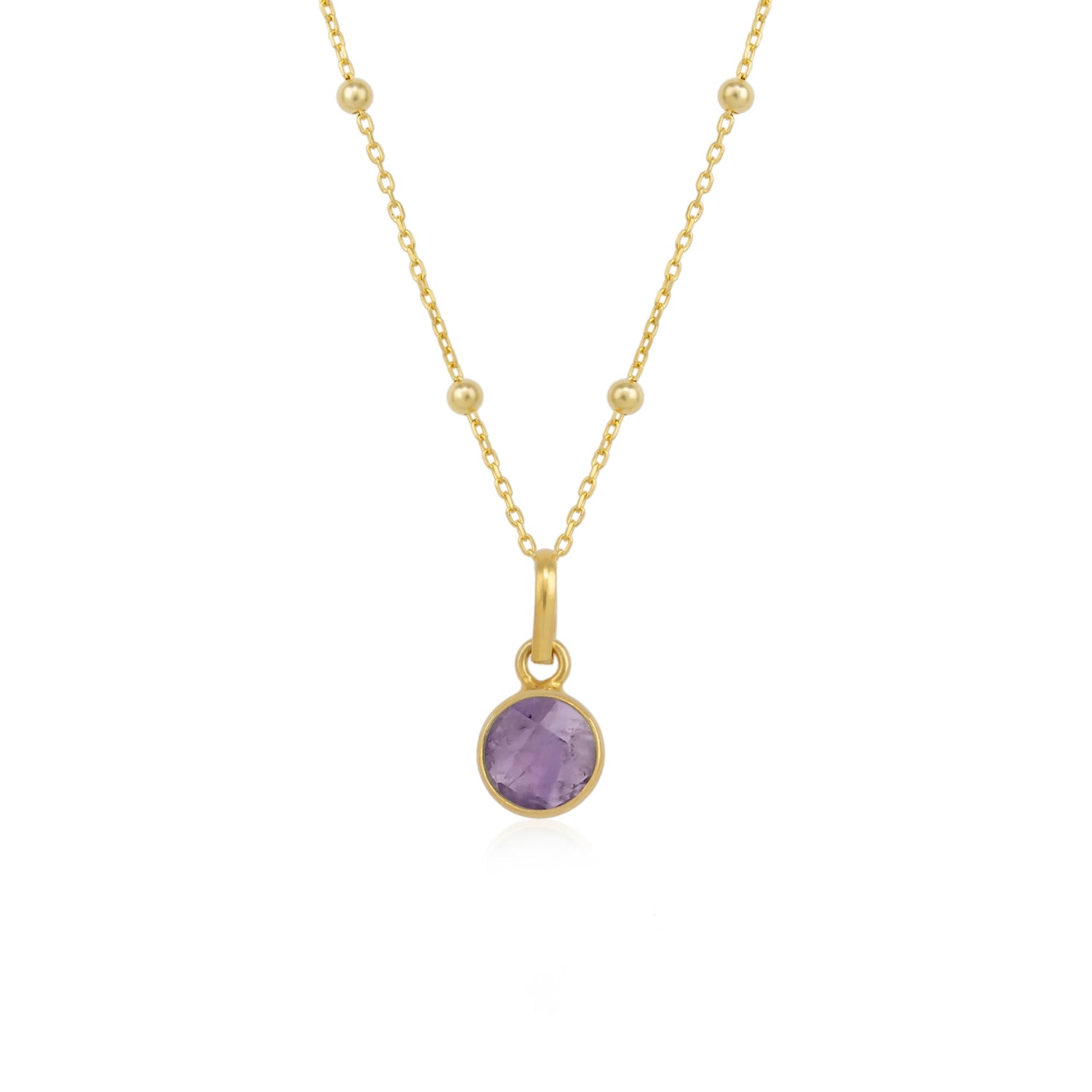 Amethyst Round Pendant Necklace With Beaded Chain In Sterling Silver